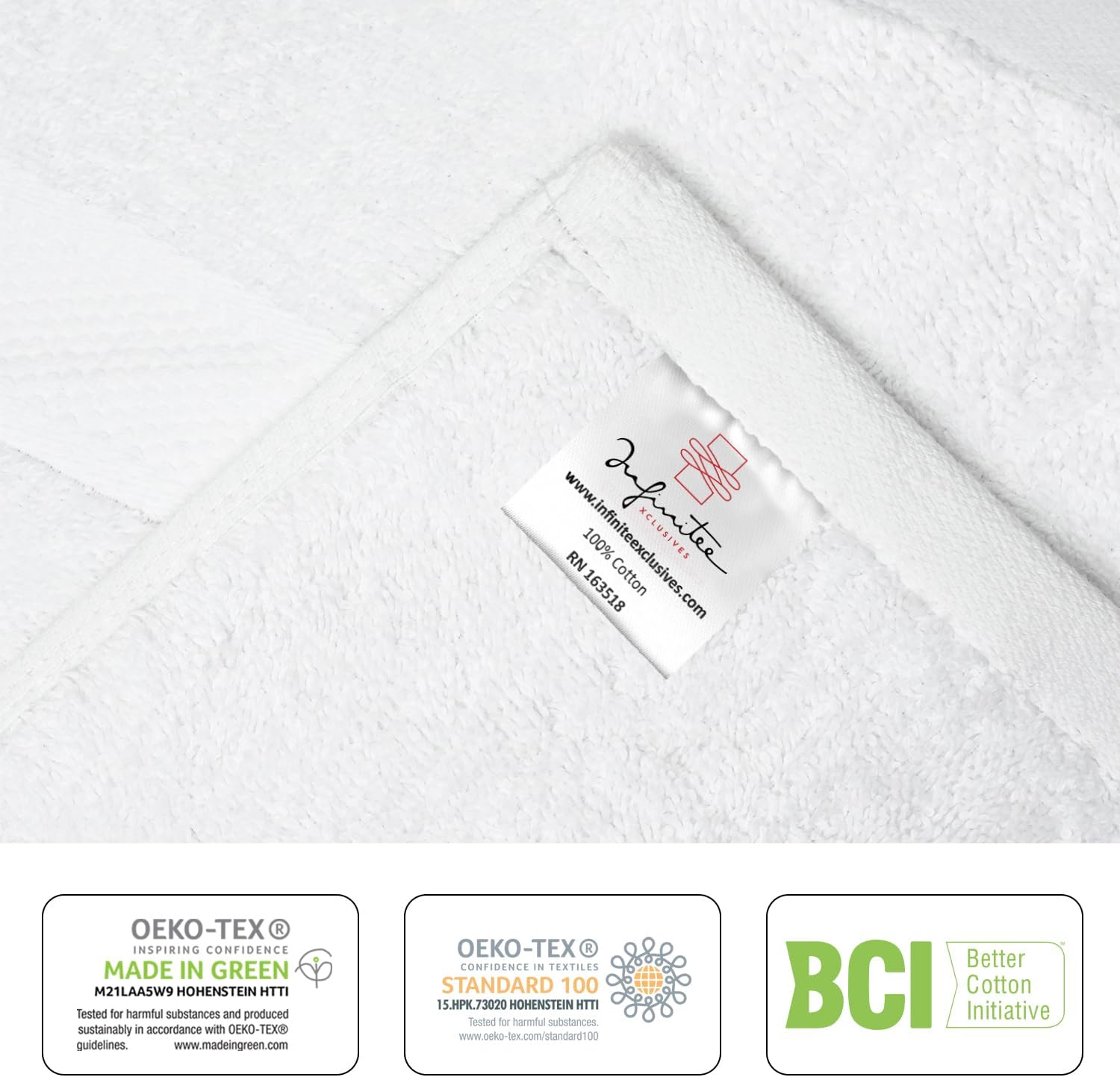 Exceptional Quality: Our 100% pure cotton bath hand towels are gentle on the skin. Our high-density hand towels are highly recommended for those with sensitive skin, and our Made in Green certification assures that our carbon footprint is as little as possible.