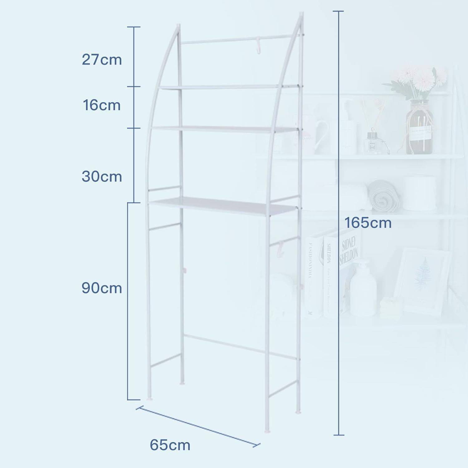 Easy to Assemble: This bathroom over washing machine shelf is very easy to install, you can easily assemble this bathroom shelf on the toilet, and it will not delay you too long, we will send you all the necessary parts, no need to drill, just complete some Simply tighten the work.