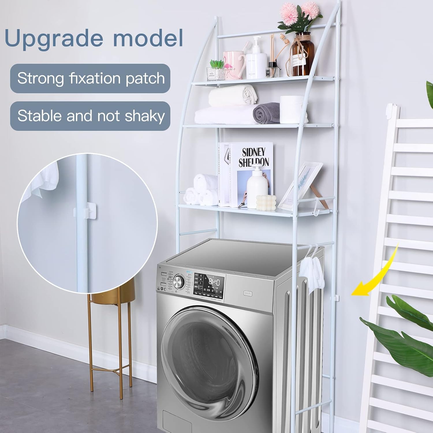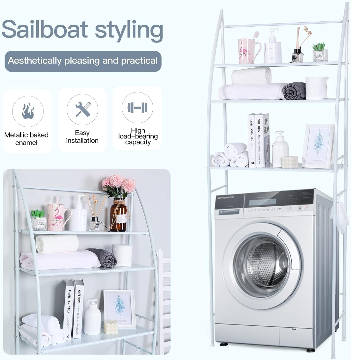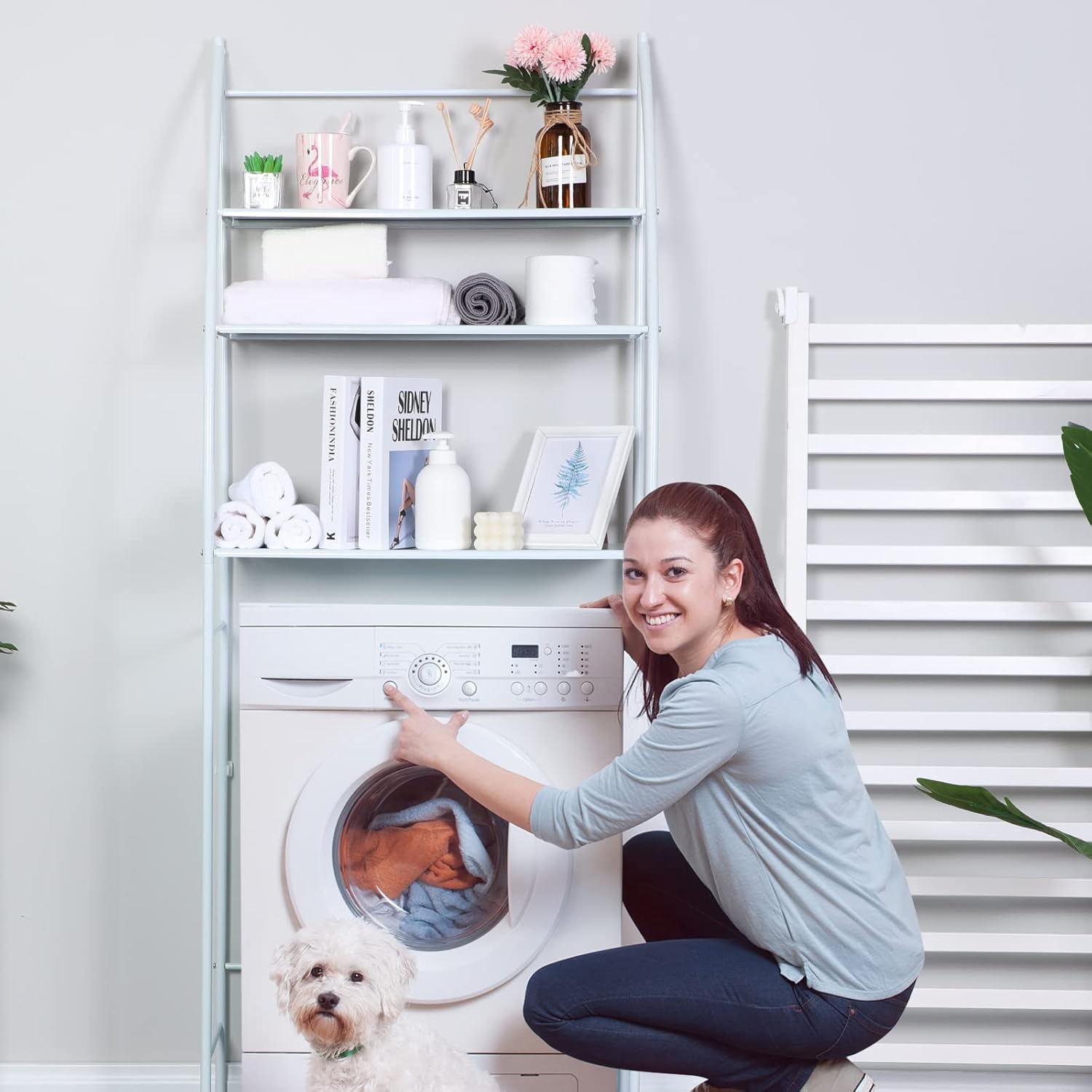 Modern Design: This behind the washing machine bathroom shelving unit is designed the simple style and white color will match perfectly and enhance the style of your room, is the perfect decoration for your bathroom/laundry, and bring you a simple and comfortable lifestyle