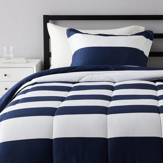 Twin-size comforter measures 66 by 90 inches and includes a 20-by-26-inch sham