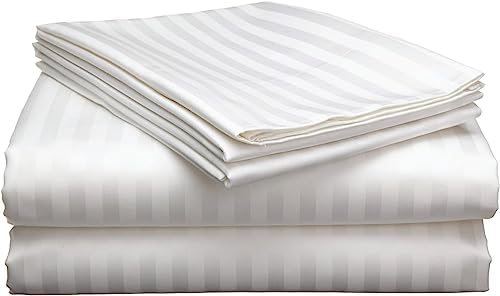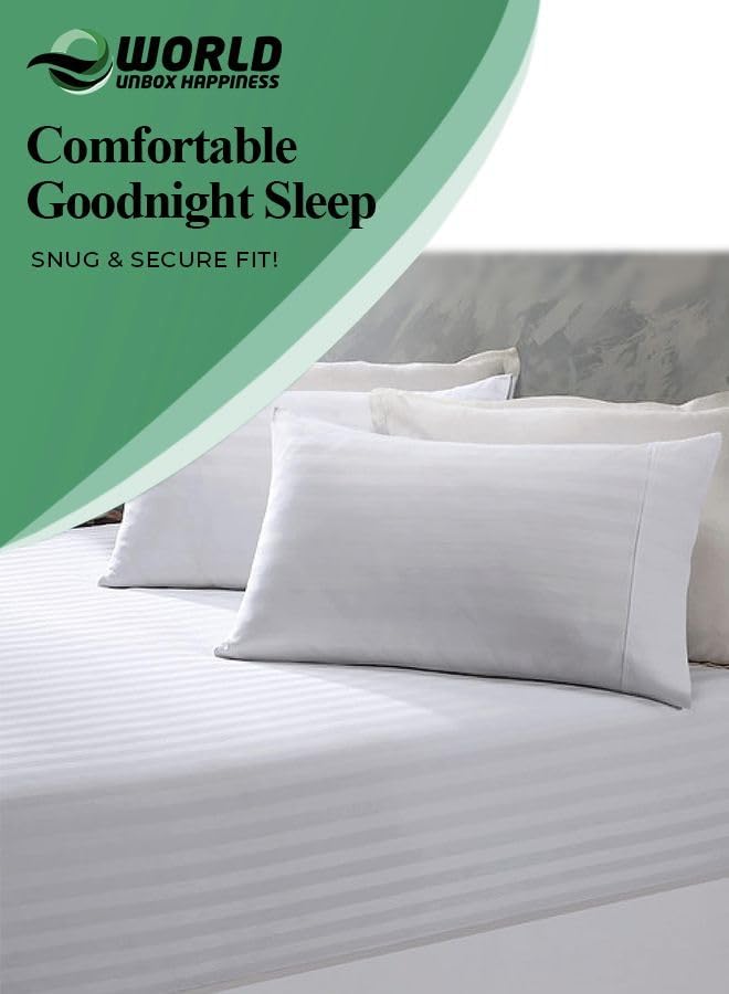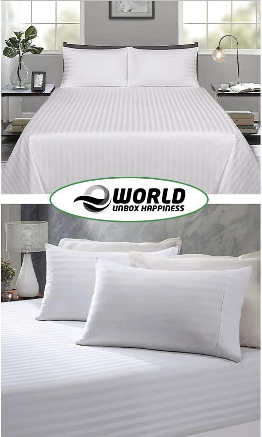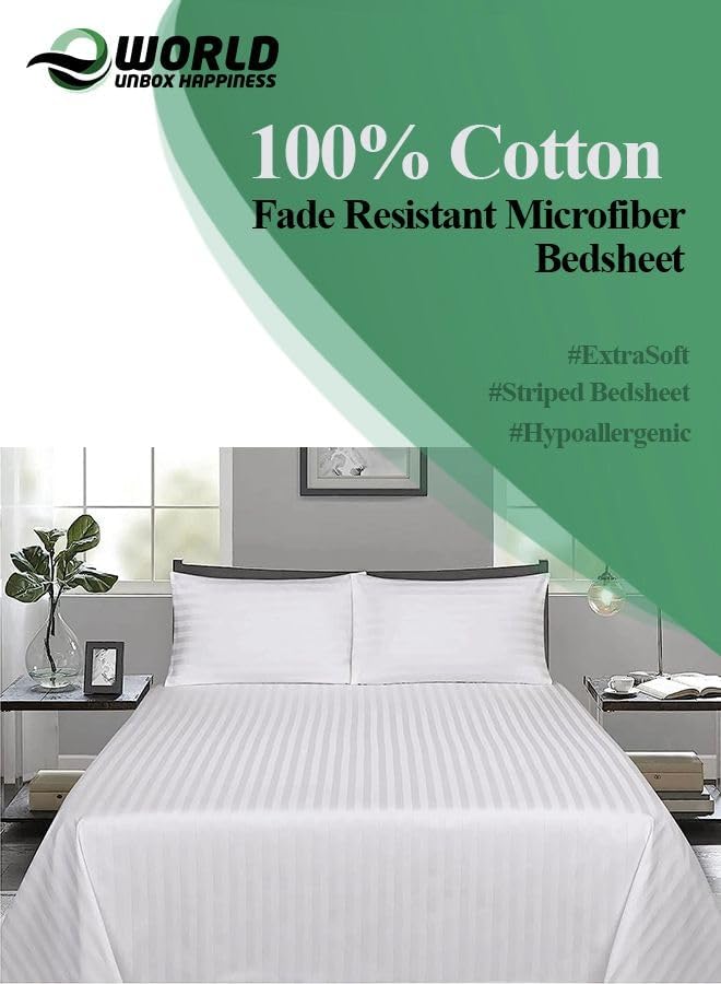 e World Luxurious Bedsheet - White Striped Bedsheet Set (220x240cm) - 3 Piece Set with 1 Flat Sheet and 2 Pillowcases (50x70cm) - Soft and Breathable Microfiber for All Seasons. (King (U.K. Standard))