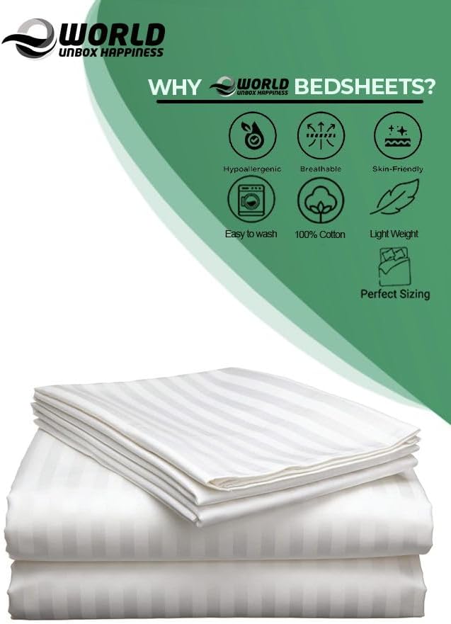 e World Luxurious Bedsheet - White Striped Bedsheet Set (220x240cm) - – BUYO