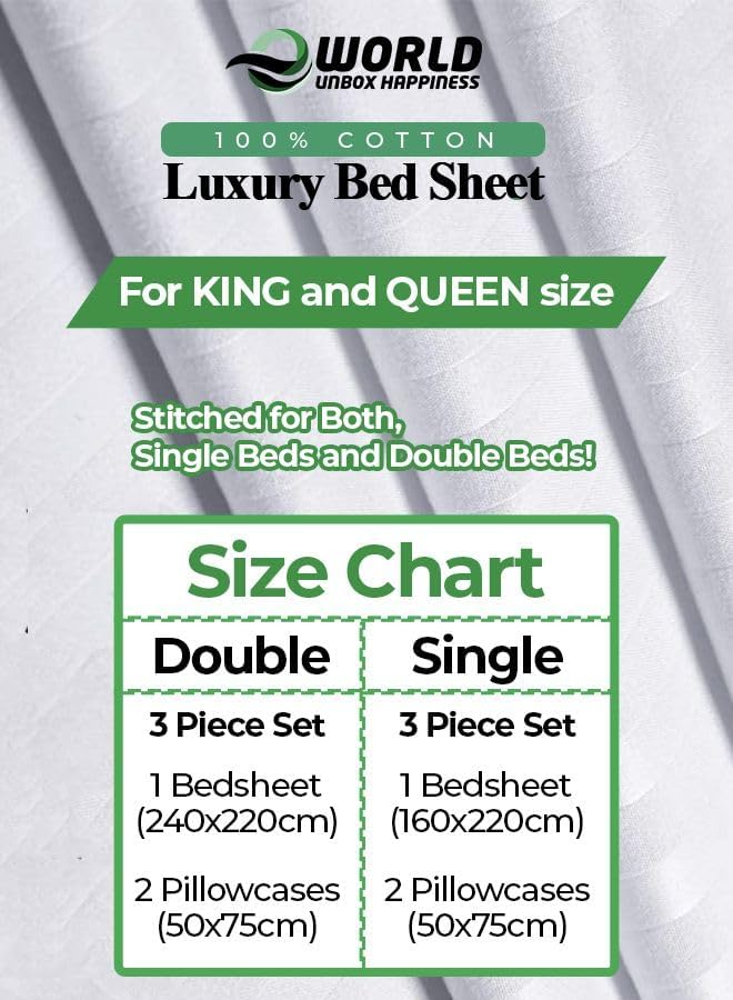 GENEROUSLY SIZED - The King Size White Striped Bedsheet Set includes a flat sheet measuring 220x240cm, along with two matching pillowcases measuring 50x70+15cm, ensuring a perfect fit for your king size bed.