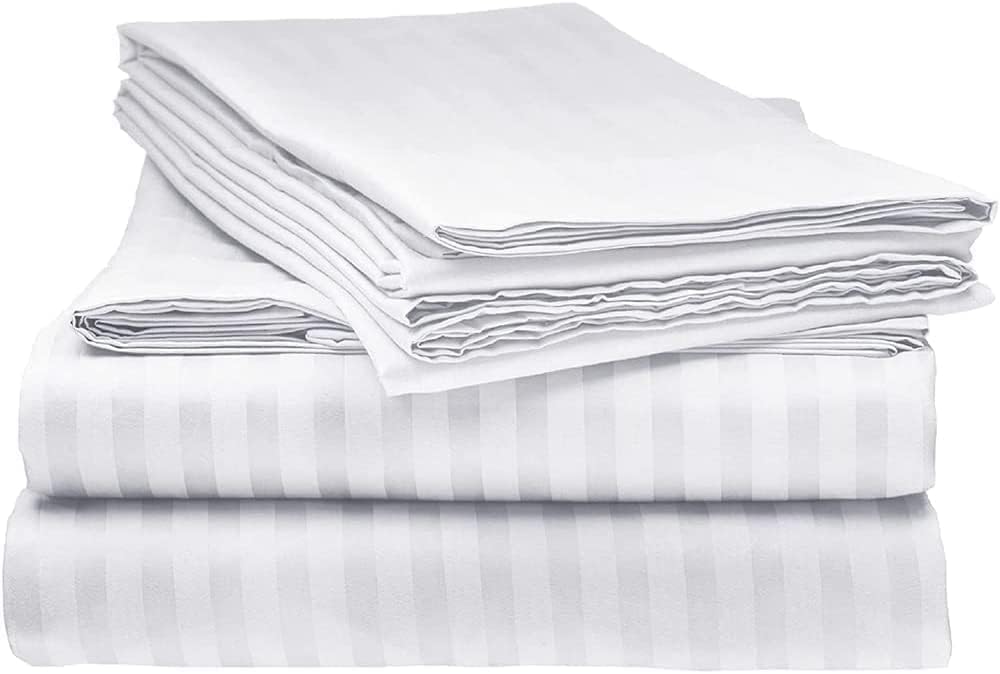 6-Piece Luxury King Size Cotton Bedsheet - Quilt Cover Set | 1 Fitted 200 * 200 Sheet + 1 Quilt Cover + 4 Pillow Cases (White)