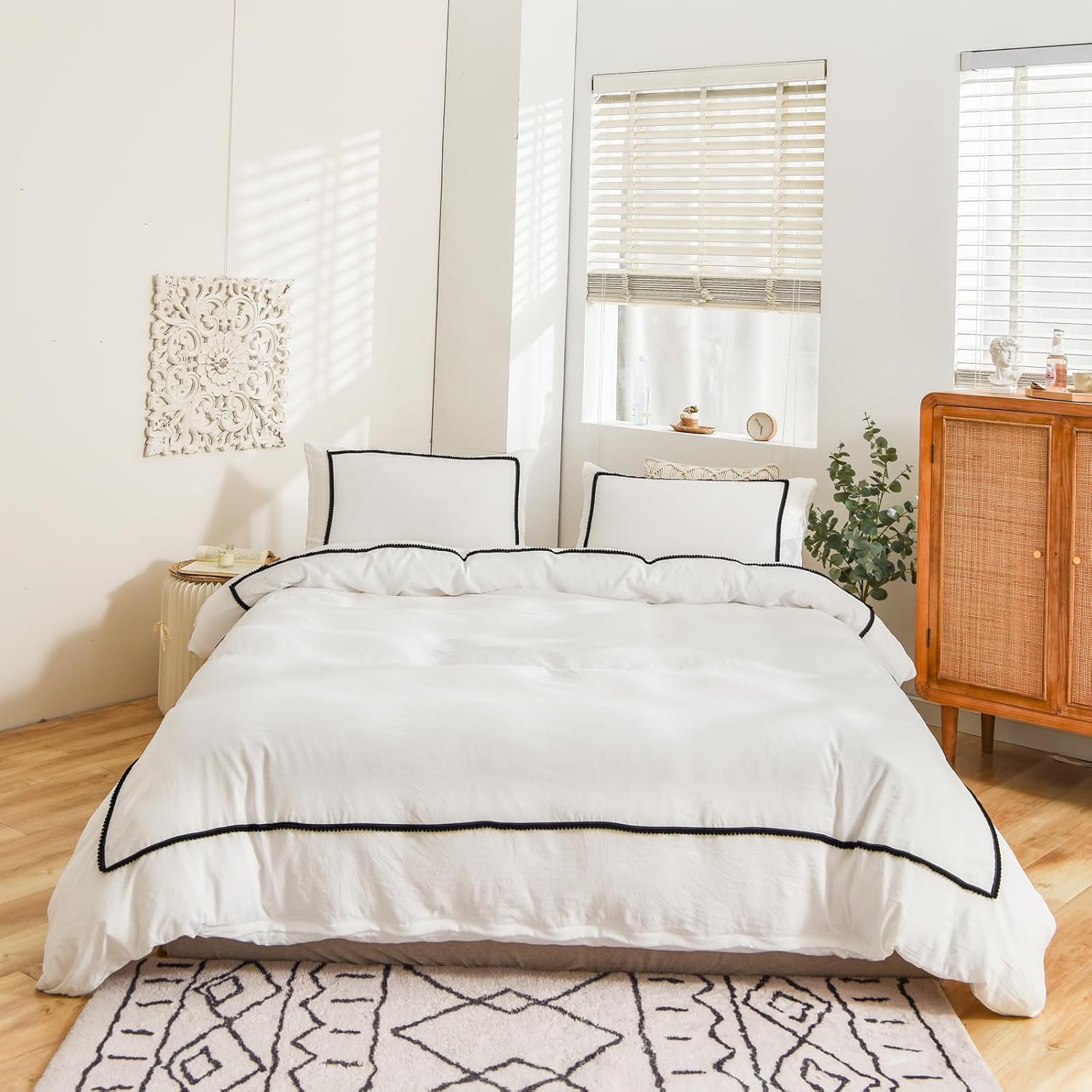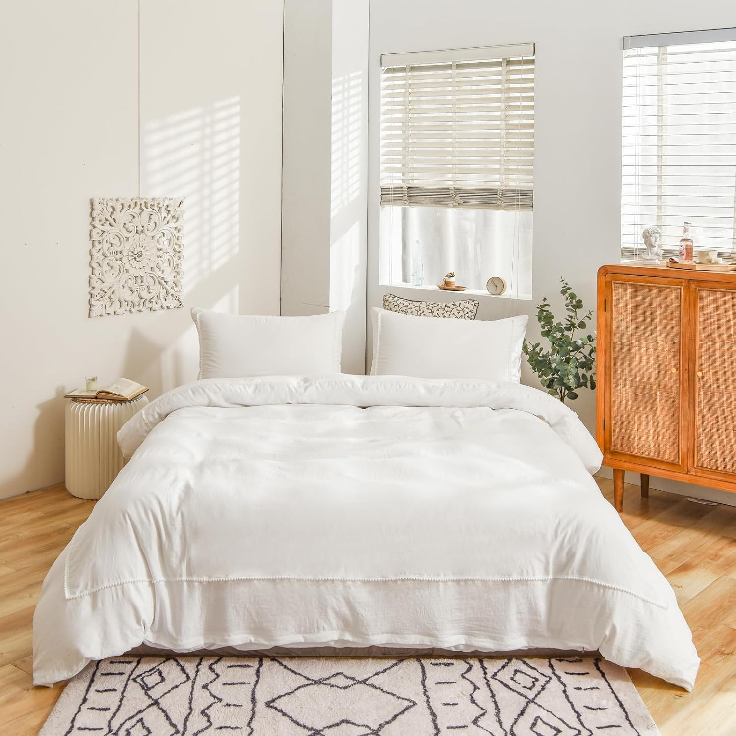 【Washed Microfiber Fabric】Our duvet cover is made of washed microfiber,which is super soft and comfortable.Enjoy the smoothness and durability of microfiber fabrics to the fullest, providing a luxurious feel for your skin and ensuring long-lasting quality.