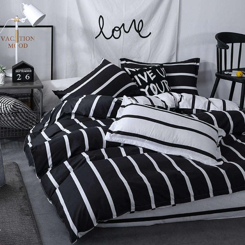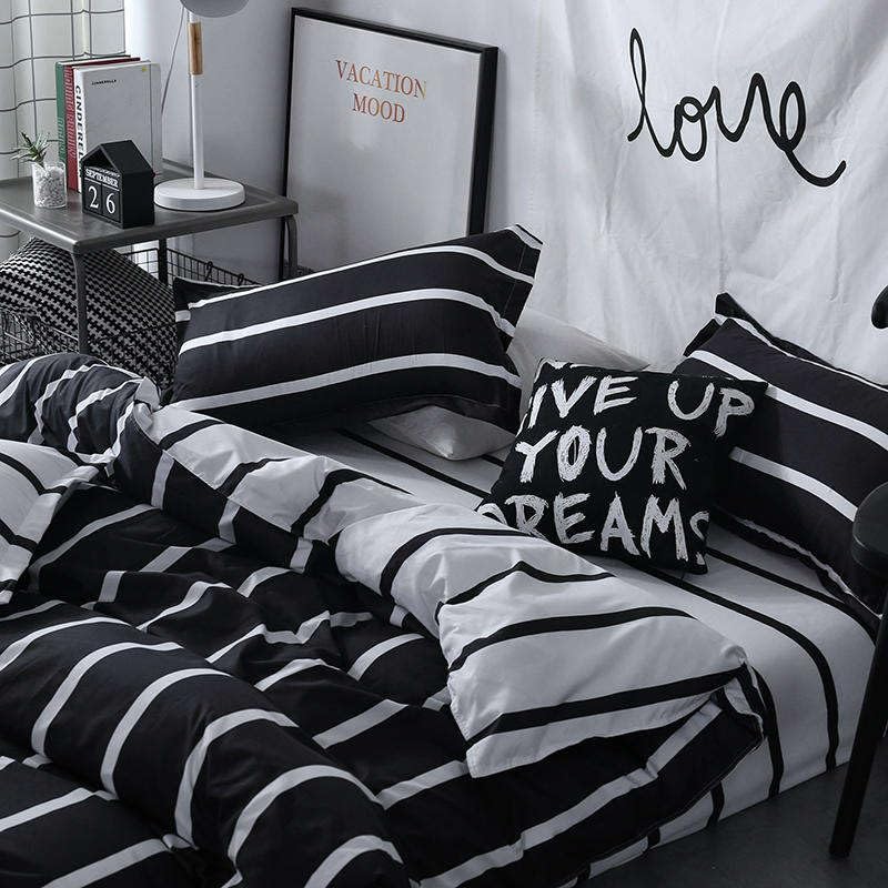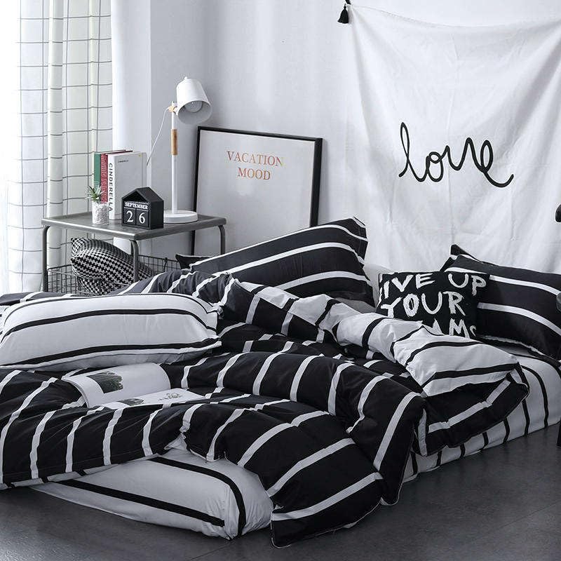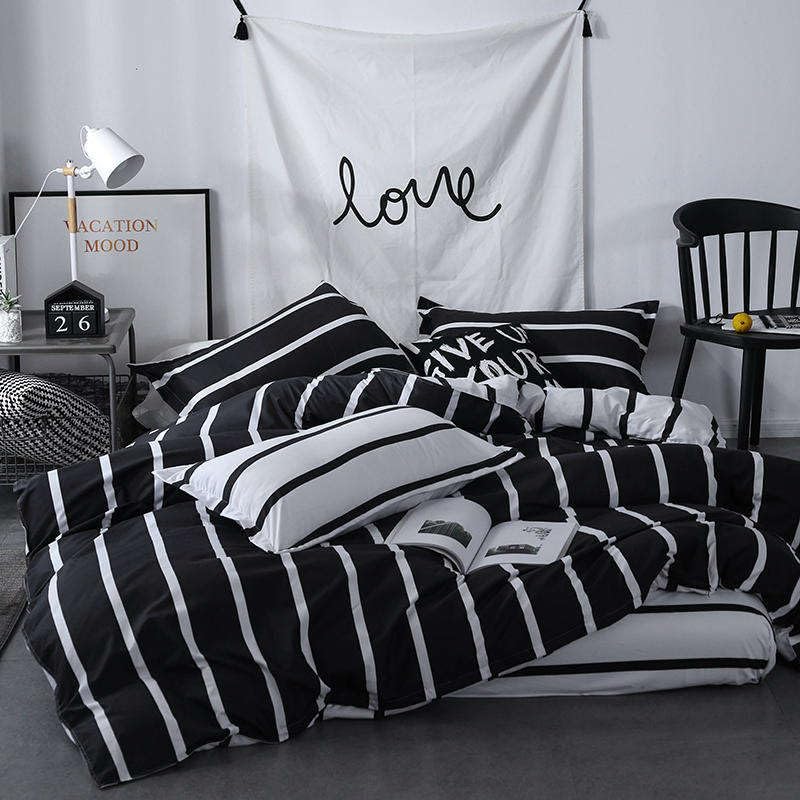 King Size Bedding Set, Hotel Quality 6 Pcs Bedsheet Set with Fitted Sheet 200x200+30cm, Quilt Duvet Cover 220x240cm & 4 Pillow Covers 50x75cm, Modern Design 6 Piece Bedding Set (Black & White)