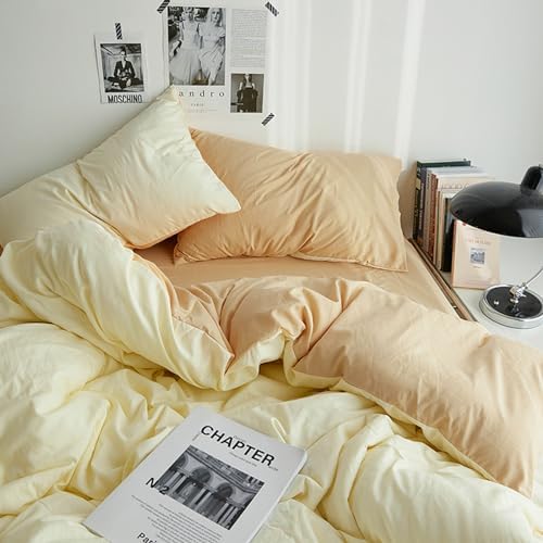 【Duvet Cover Set】4-piece king size washed cotton duvet cover set includes 1 quilt cover 220 x 240cm & 2 envelope closure pillow cases 50 x 75cm & 1 bedsheet 230 x 250cm. (COMFORTER/INSERT NOT INCLUDED)