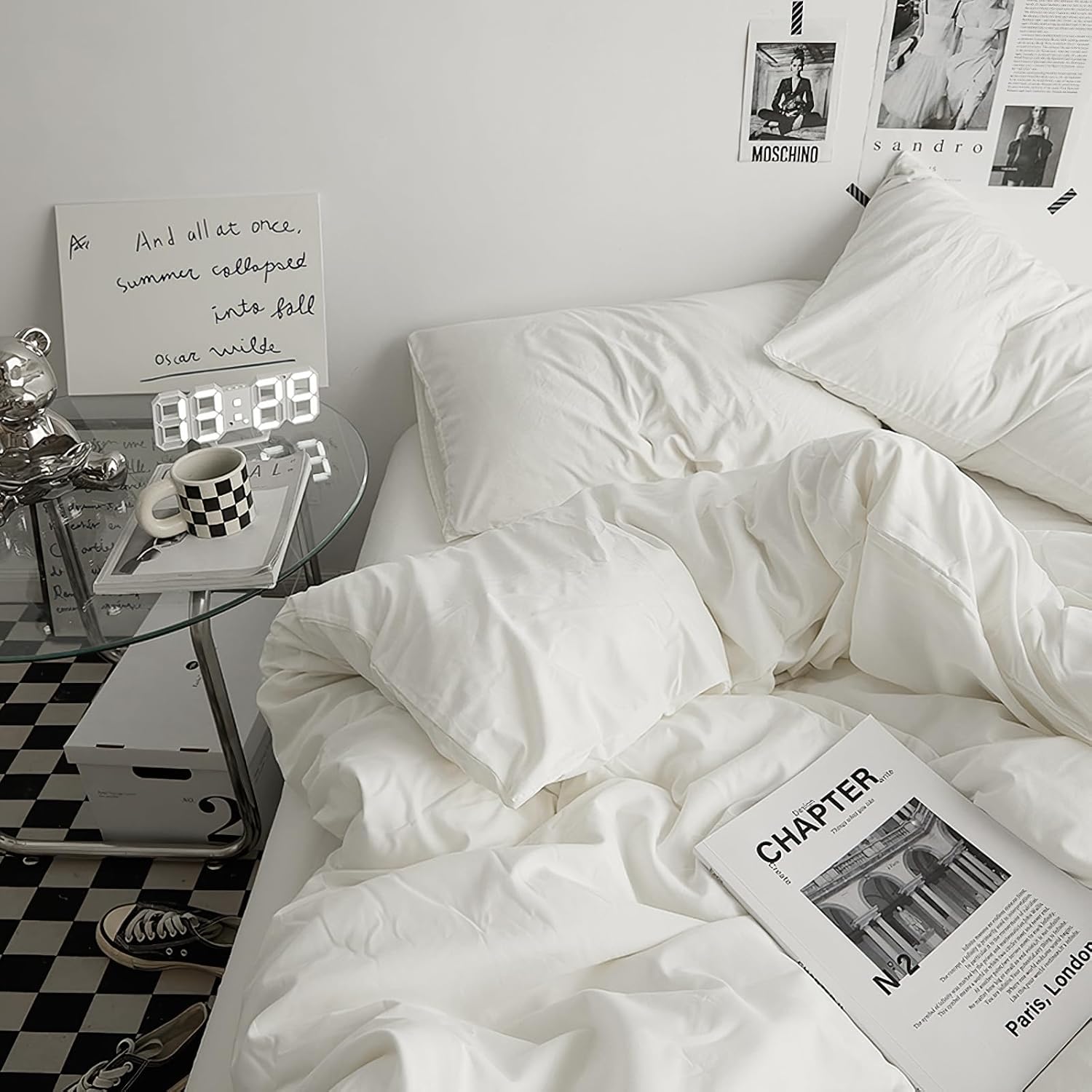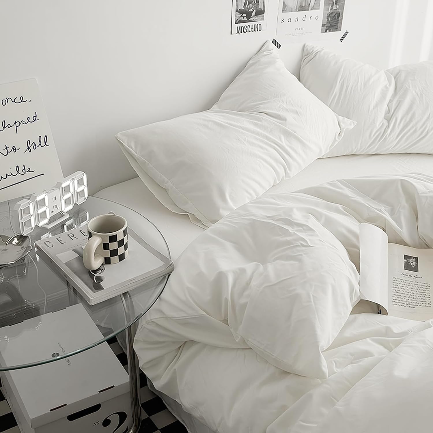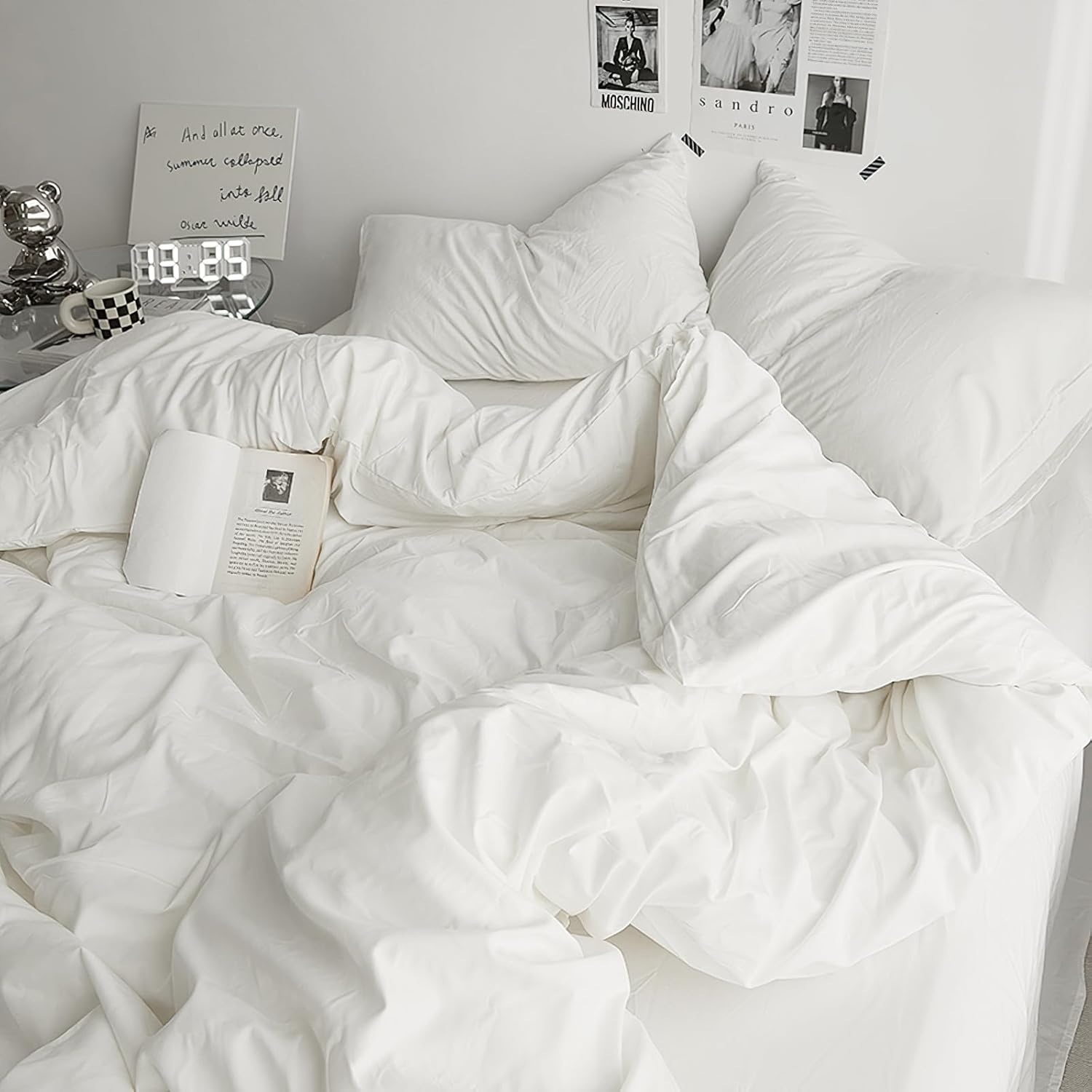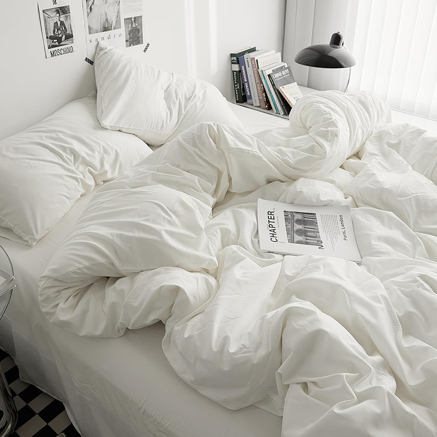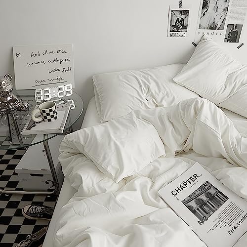 UCHUANG Duvet Cover Set King Size 4 Pcs, Include 1 Quilt Cover 220 x 240cm & 2 Pillow Cases 50 x 75cm & 1 Bedsheet 230 x 250cm, Super Soft Quality Cotton Bedding Set, NO Comforter - Milkshake White