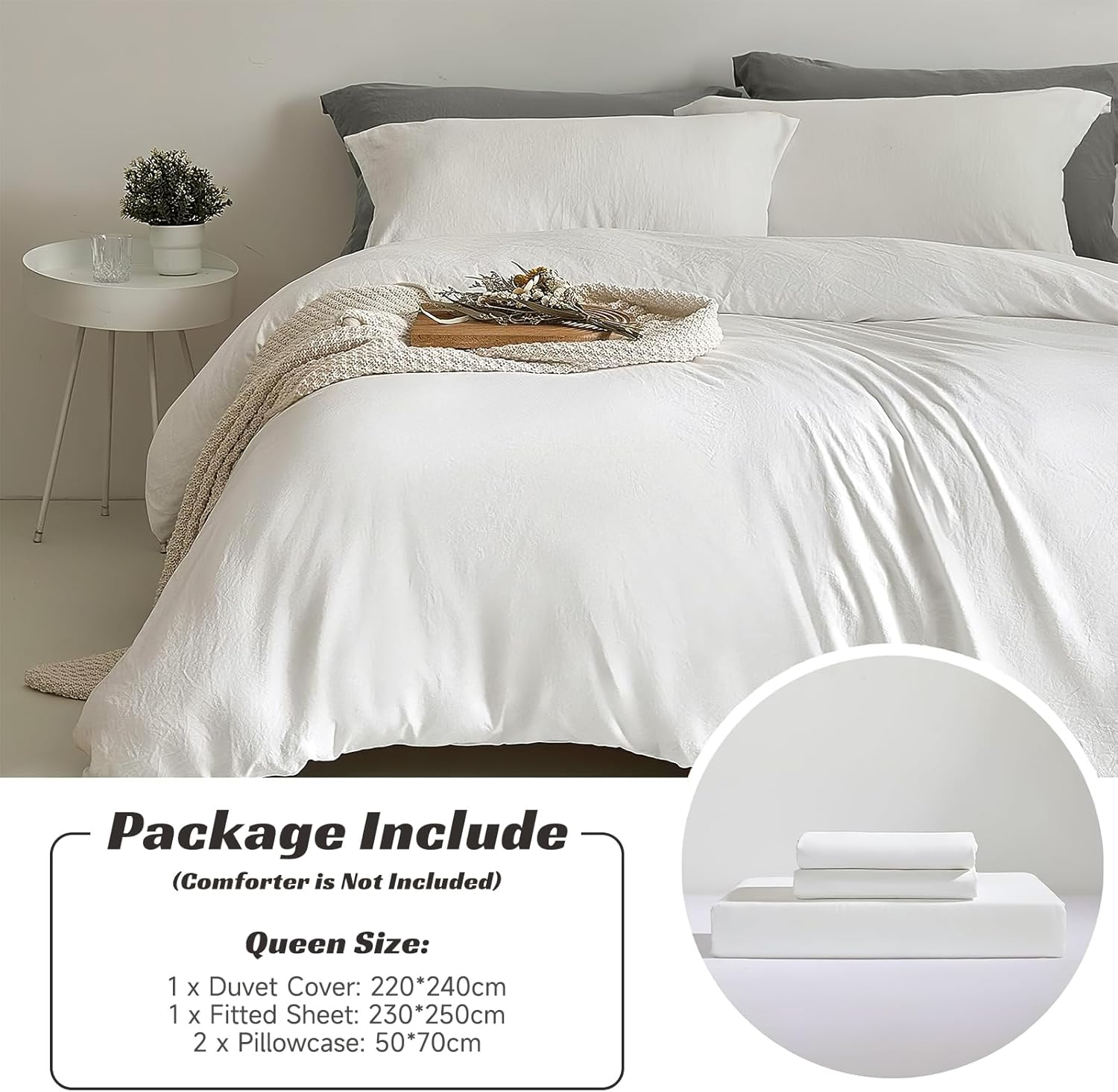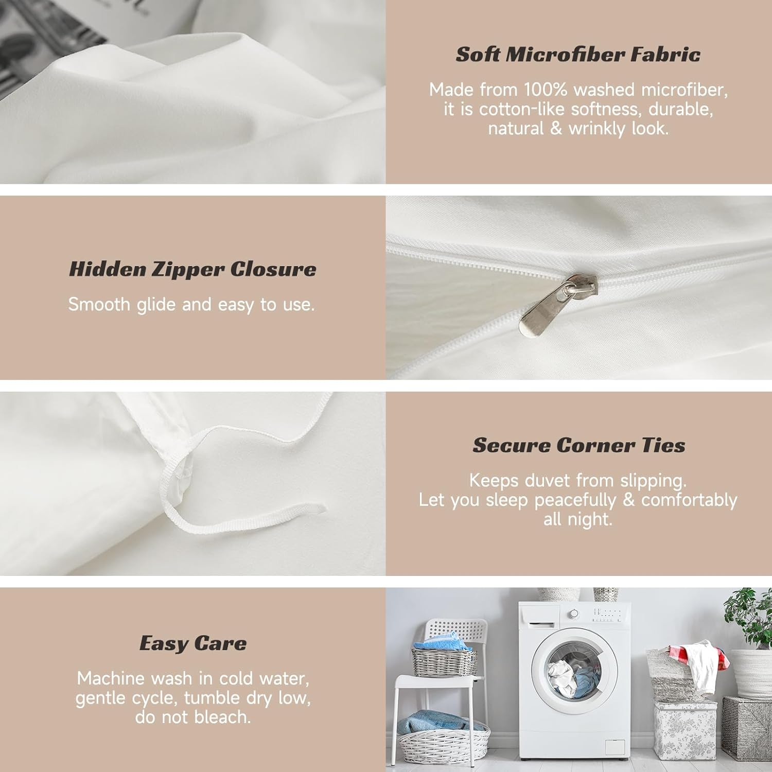 【100% Breathable Washed Cotton】This quilt cover set is made of 100% washed cotton.It is breathable, keep you cool in the summer and dry and warm in the winter; durable and soft, high density fabric keep duvet cover's shape and softness after every wash.