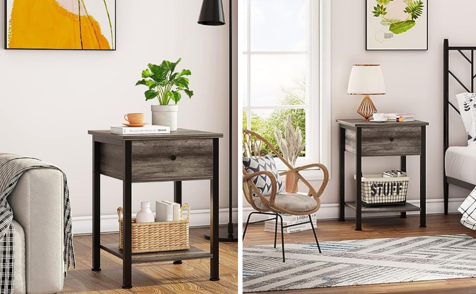 【Easy To Assemble】: The end table measures 15.7" L x 15.7" W x 21.7" H. The bedside nightstand comes with detailed instructions and all hardware needed for installation, you can easily assemble it by yourself.