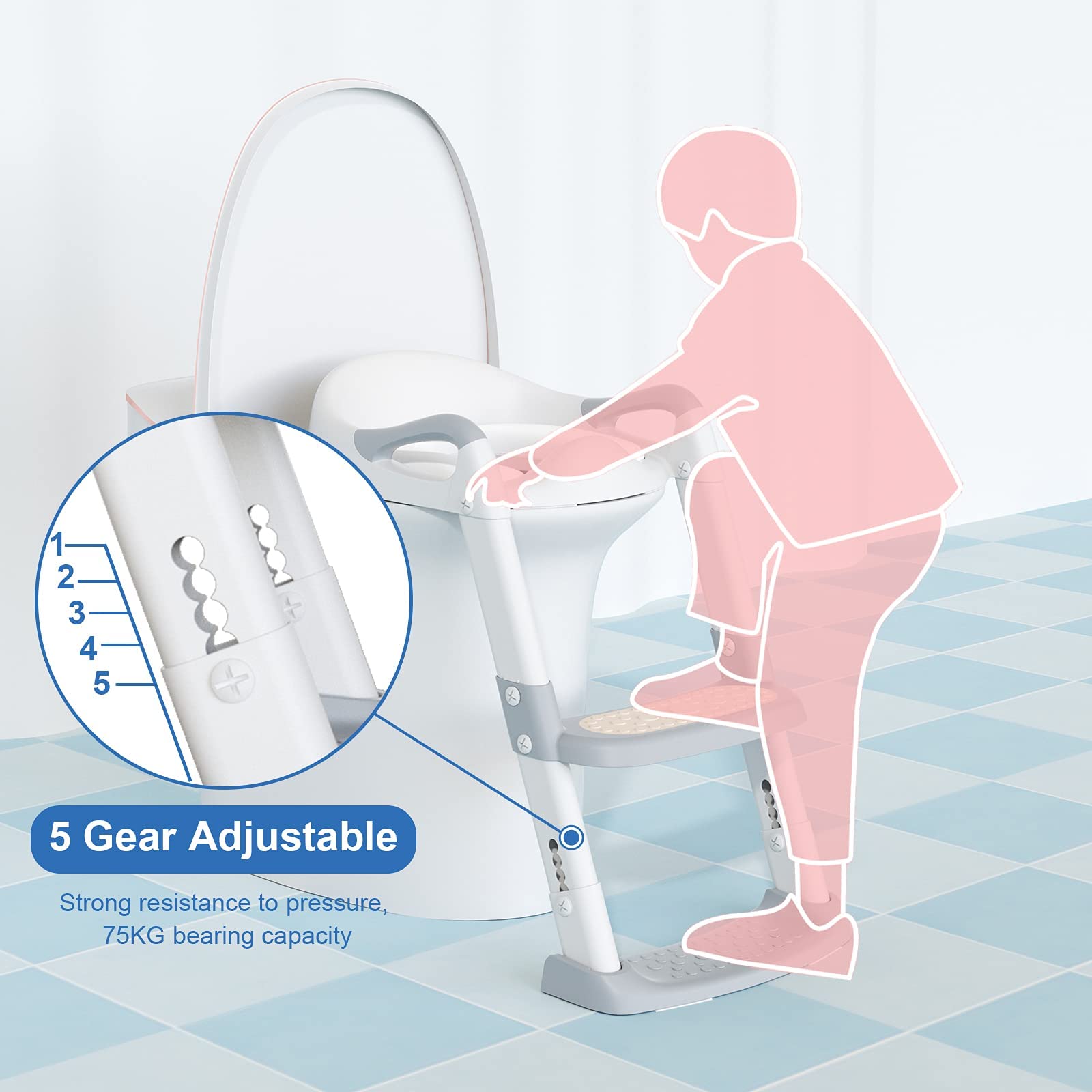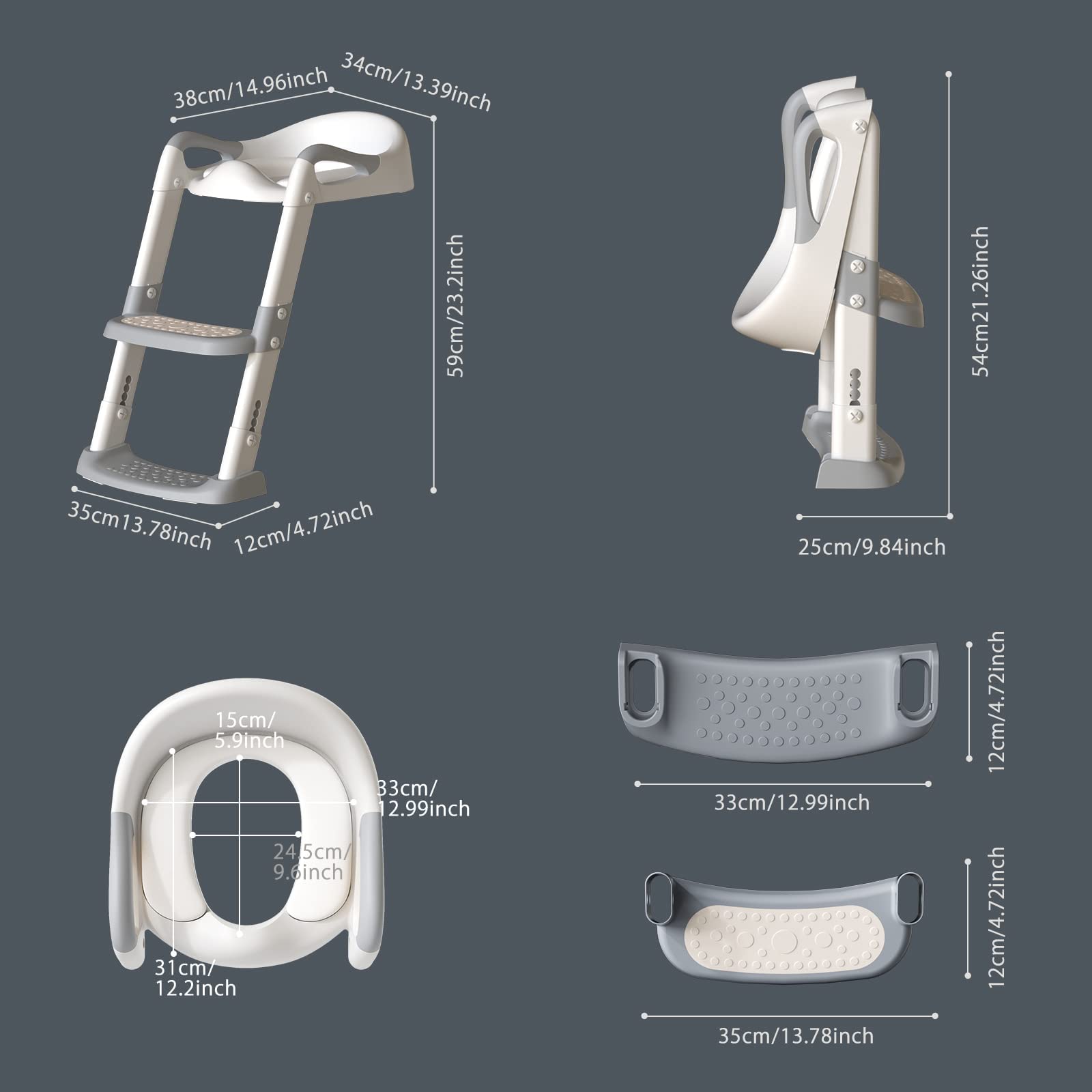 GDTOMEEU Toilet Potty Training Seat with Step Stool Ladder, Potty Training Toilet for Kids Boys Girls Toddlers-Comfortable Safe Potty Seat with Anti-Sli (Grey)