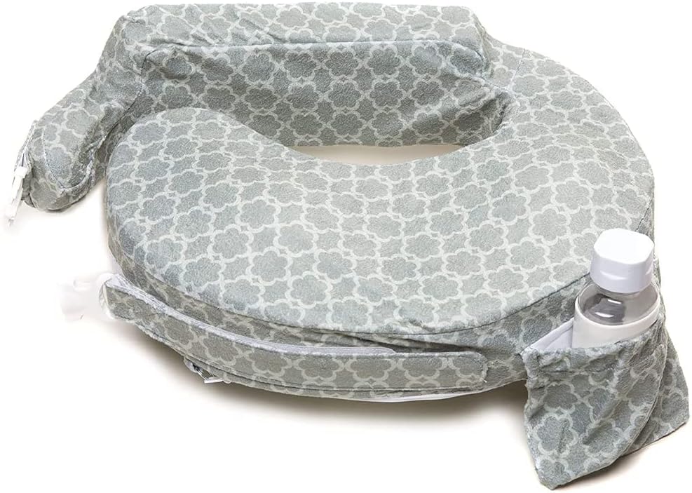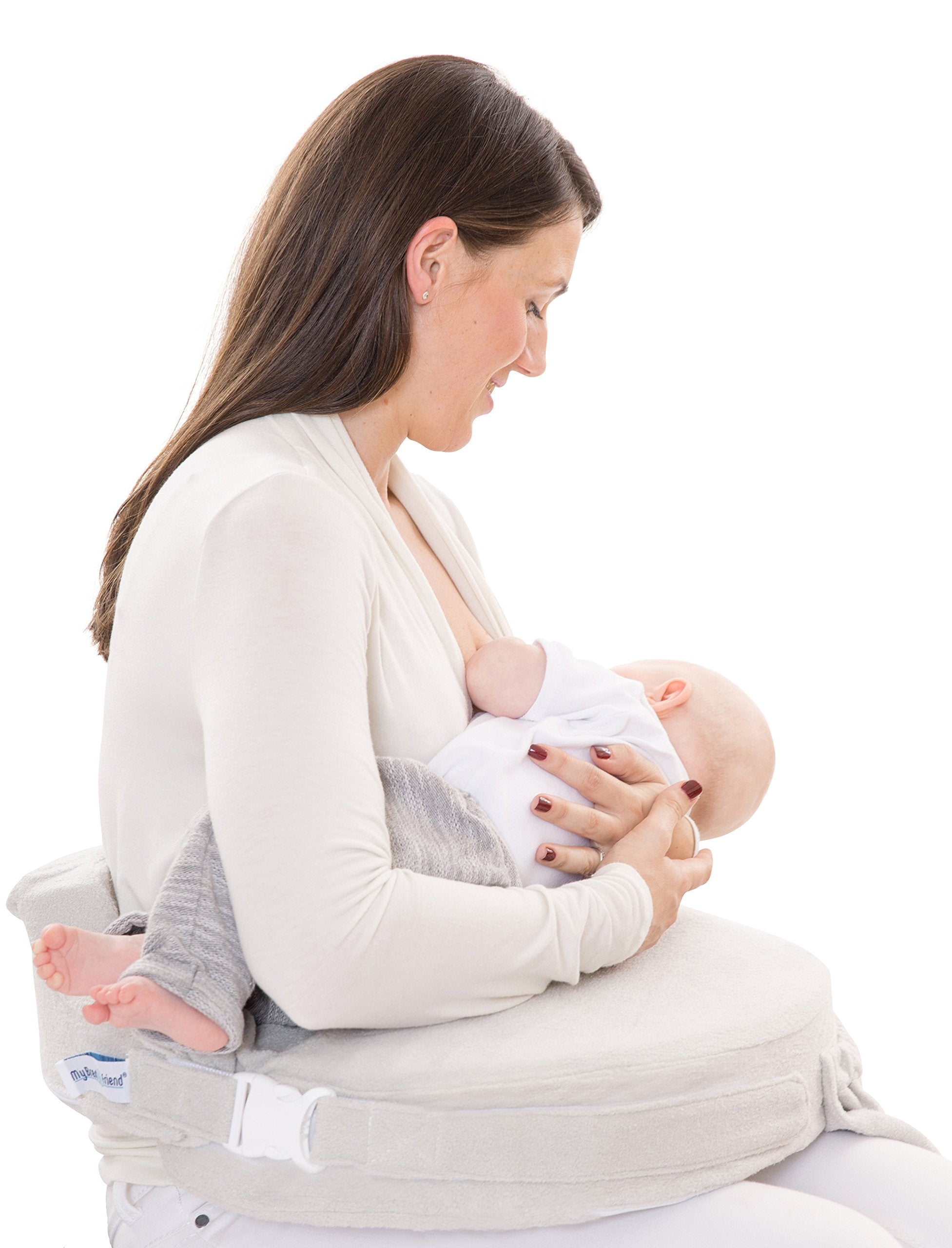- Wrap around nursing pillow design secures to the body helping mom and baby maintain positioning and latch-on