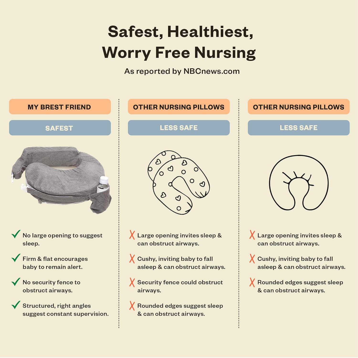 My Brest Friend Deluxe Nursing Pillow for Breastfeeding & Bottle Feeding, Enhanced Posture Support Feeding Pillow, Double Straps & Removable Extra Soft Slipcover, Evening Grey