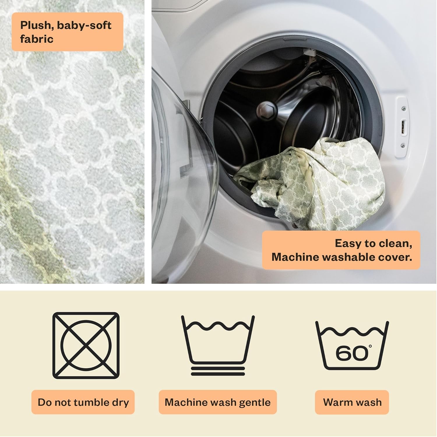 - Extra soft baby-plush fabric, double-featured strap with velcro and silent-release buckle for easy, one-hand use and slipcover stays fresh through dozens of washes