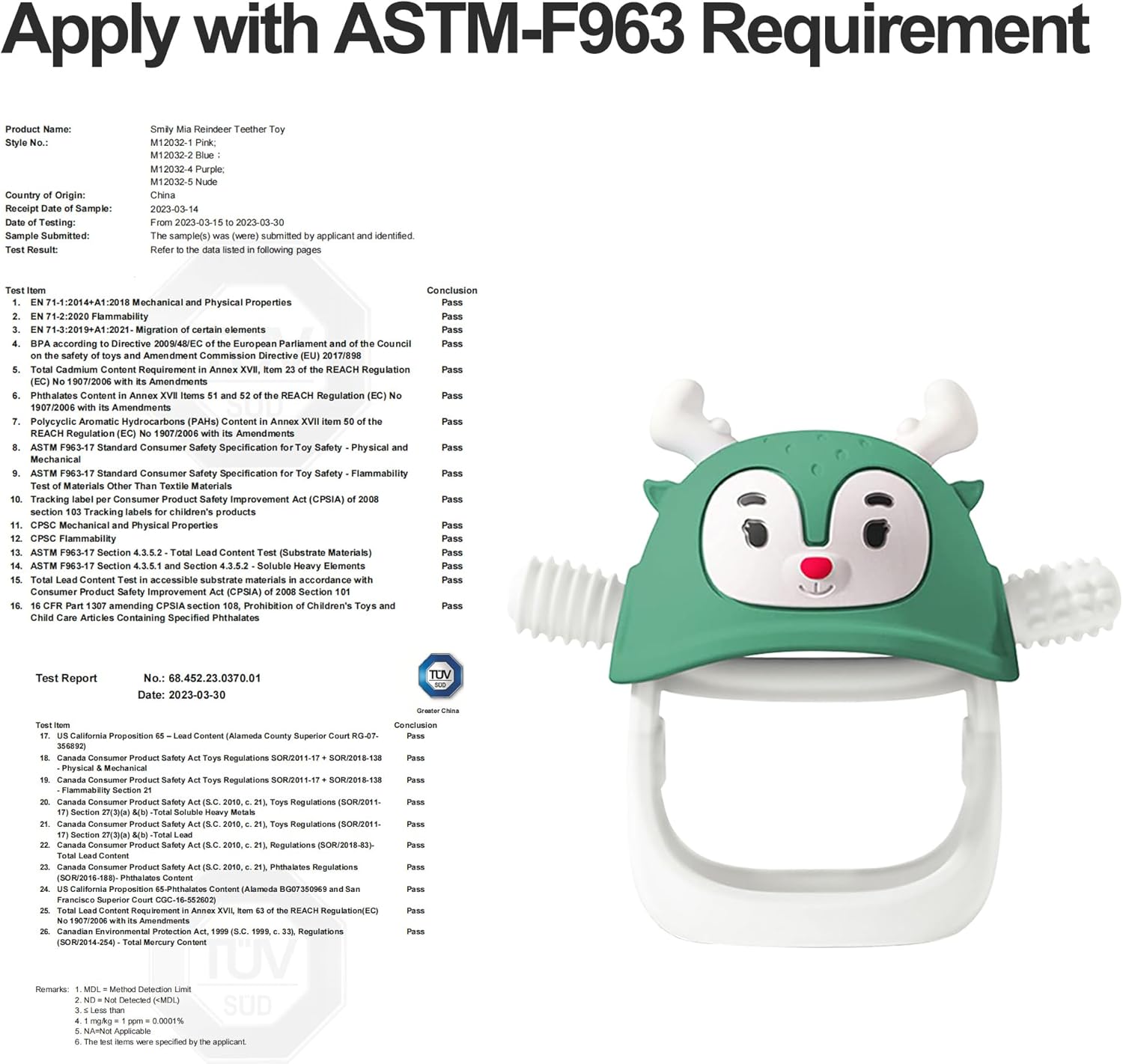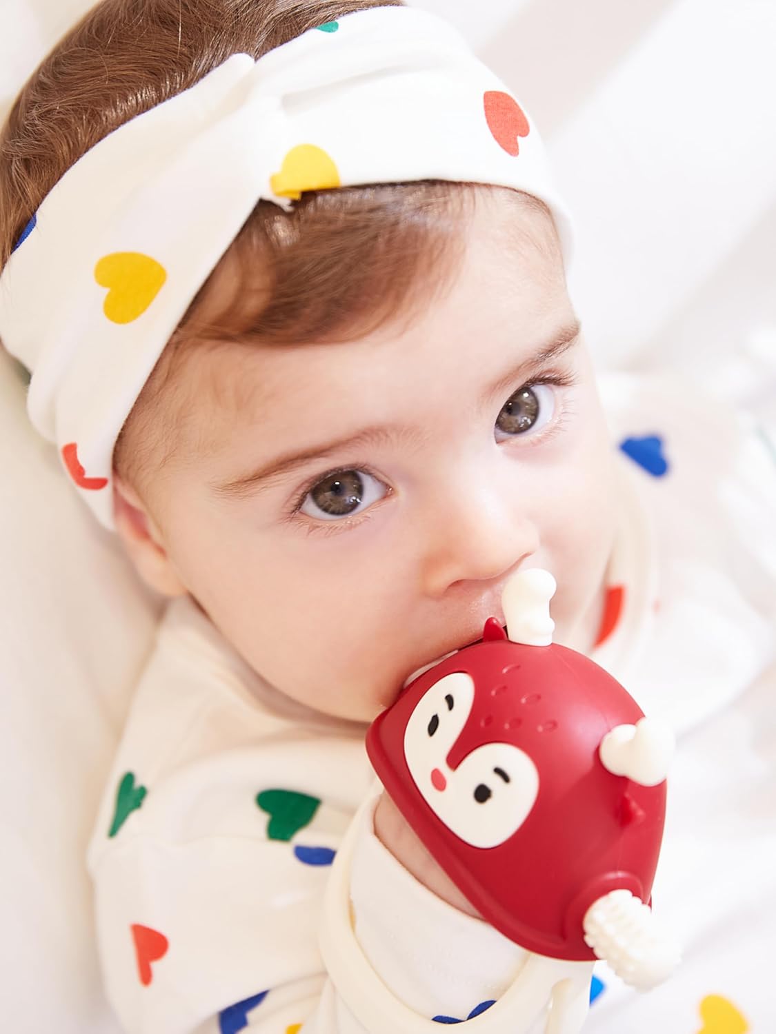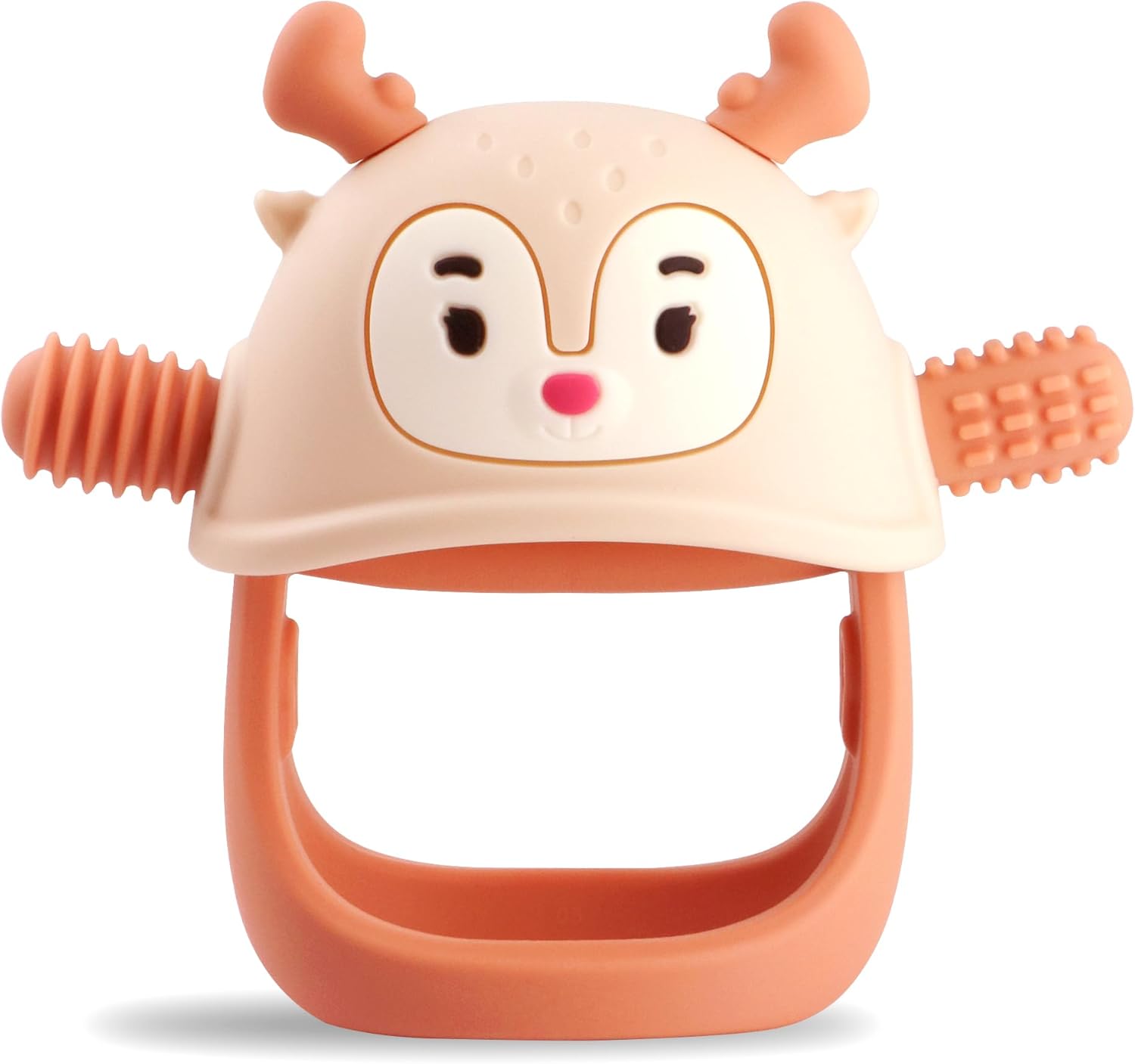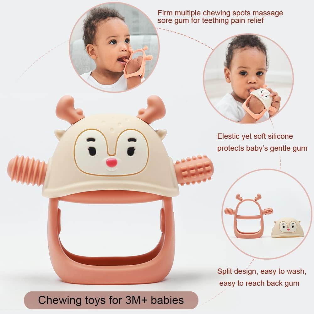 - 【SAFE MATERIAL & SAFE DESIGN】: The baby teether is made of food grade silicone. Stays on baby’s hand makes sure the head part do not flip over to prevent suffocation. No chemical stuff add in the teether to make sure it is 100% safe.No odd smell, no potential small parts. It is dishwasher safe, freezer safe. Its non-choking design ensures baby not be able to put it too far behind to cause gag.