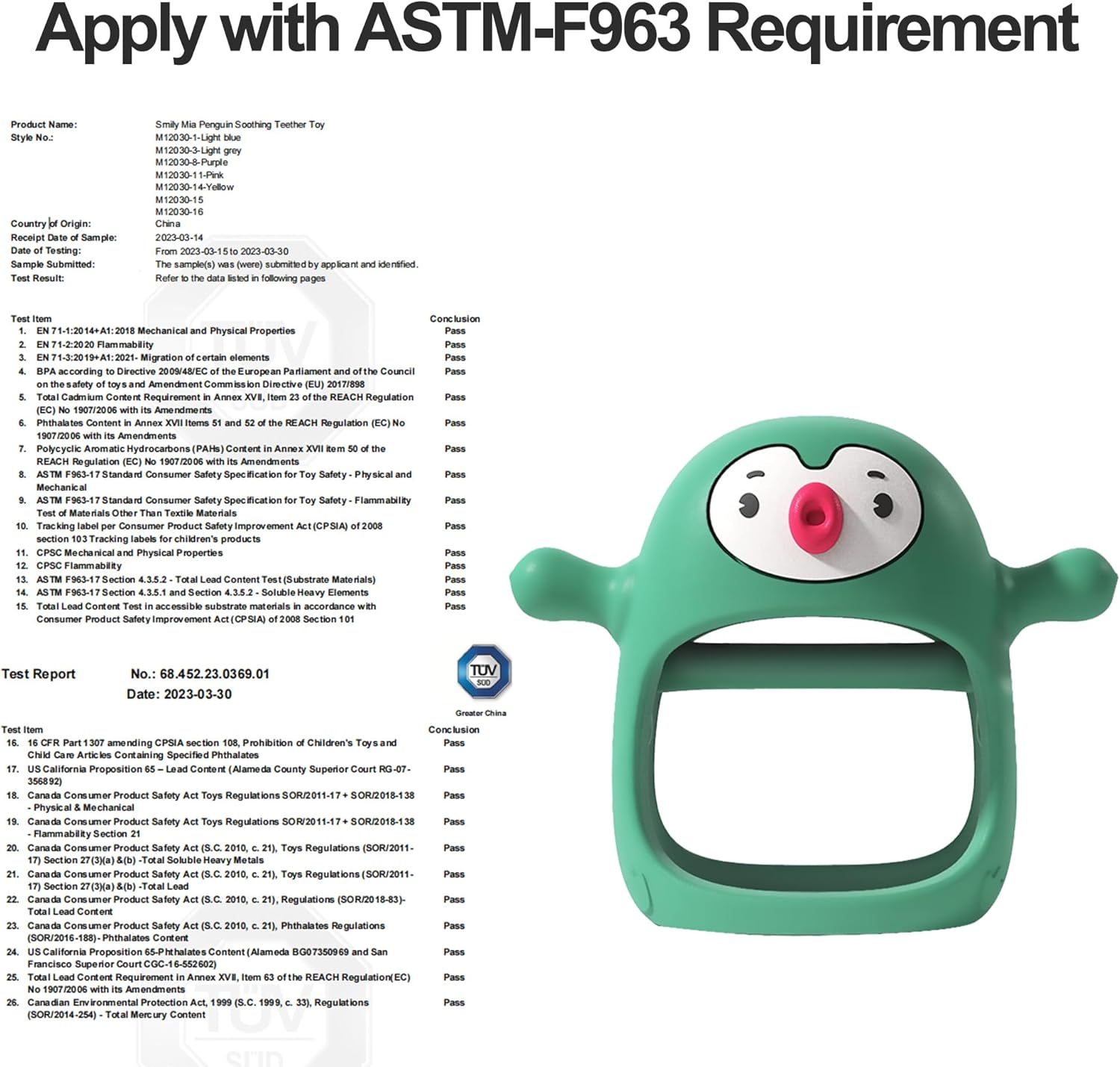 - 【BEST TEETHER FOR 3-6MONTHS BABIES】:For 0-6Months babies, sucking is calming. At the same time, baby start teething around 3Months old. This penguin teether is designed for sucking with the shape to mimic natural latch feelings, works as a pacifier. At teh same time, our PACIFIER part is MUCH THICKER than other soothers, which is more chewy and durable for baby to rubbling and massaging sore gum from constantly pulling the teether for early teething pain relief. Its thick and chewy part makes sure it is safe for 6-12months babies with tooth to chew on it.