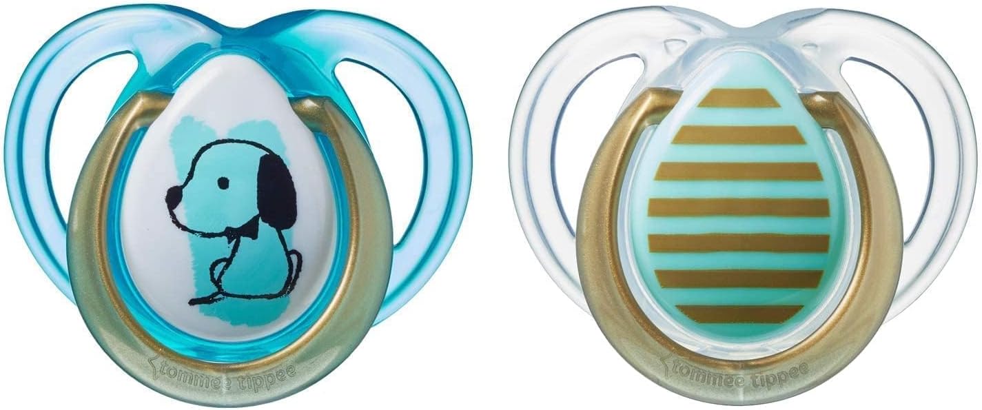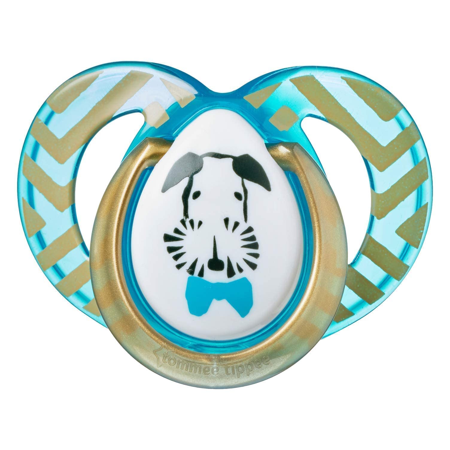 Tommee Tippee Moda Soothers, Symmetrical Orthodontic Design, BPA-Free Silicone Baglet, Includes Steriliser Box, 6-18m, Pack of 2 Dummies