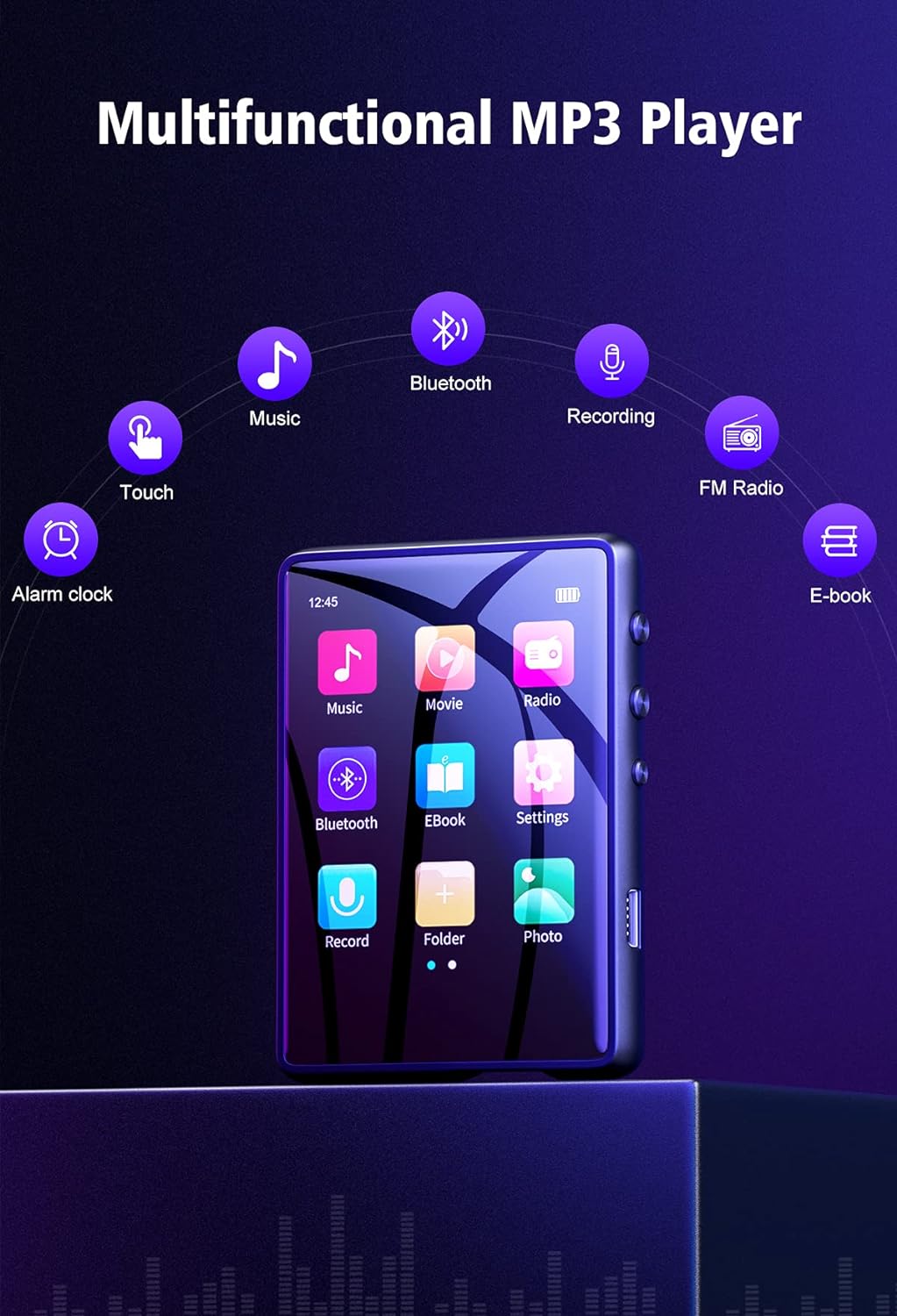 MECHEN 32GB MP3 Player with Bluetooth 5.3, 2.4 Inch Touch Screen Portable Music Player, FM Radio Recorder Ebook Video (Black)