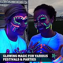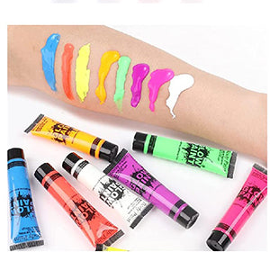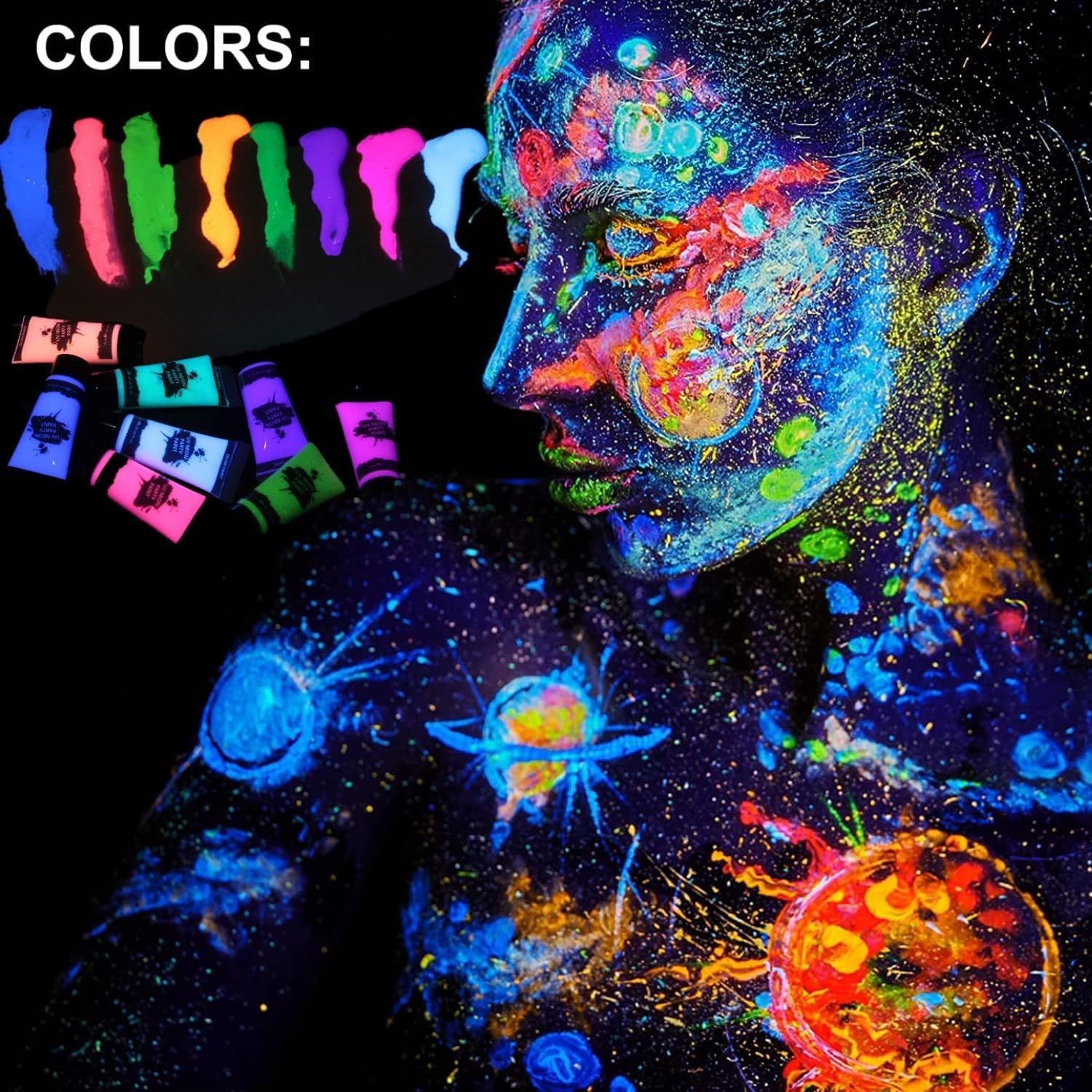 ✨️【Glow Under UV Light】Neon face and body paint has 8 vibrant colors and emits charming light under black or UV light. With different colour combinations, your charm will be even more attractive.