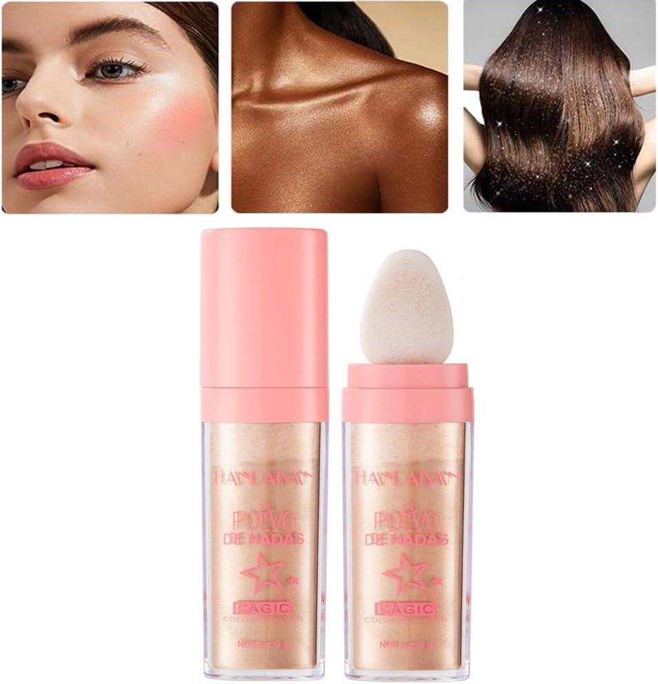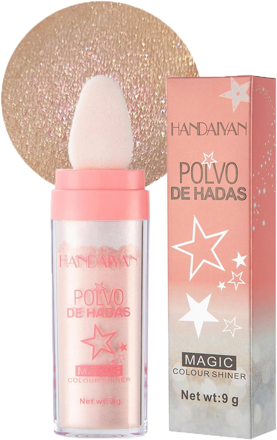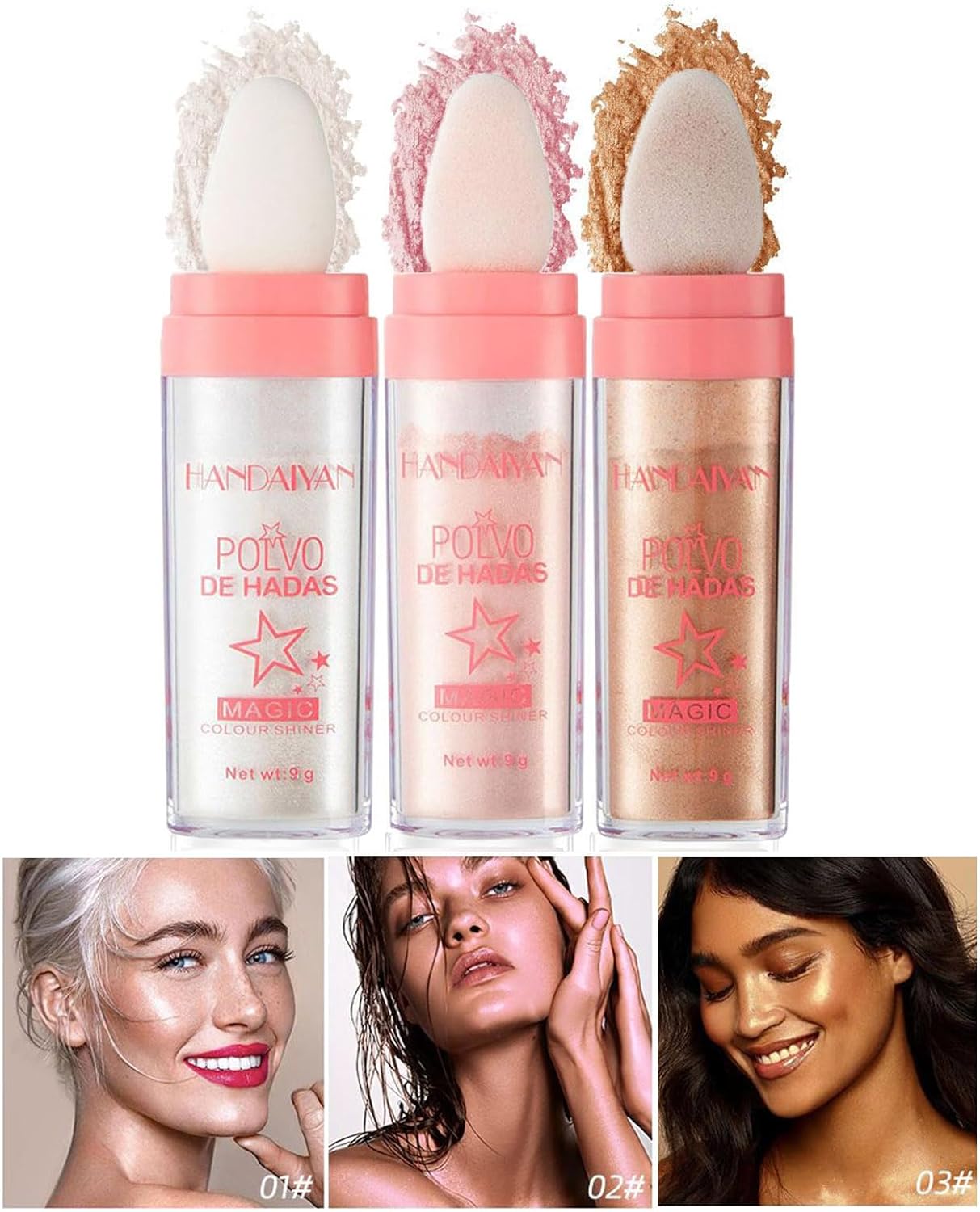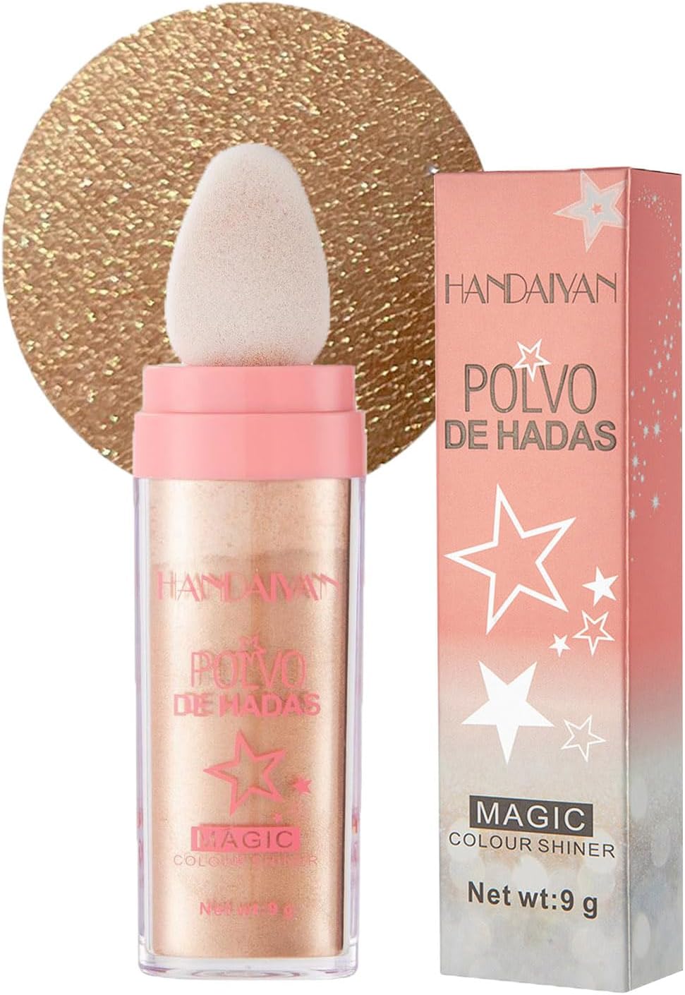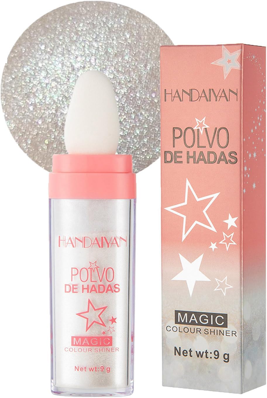 Body Shimmer Powder Polvo De Hadas Fairy Highlighter Glitter Natural Pigment Shiner Stick Loose Oil Glow Body Brighten Dust with Puff Makeup Three-Dimensional Face,Eyeshadow,Eye,Hair,Body,Hair(3)