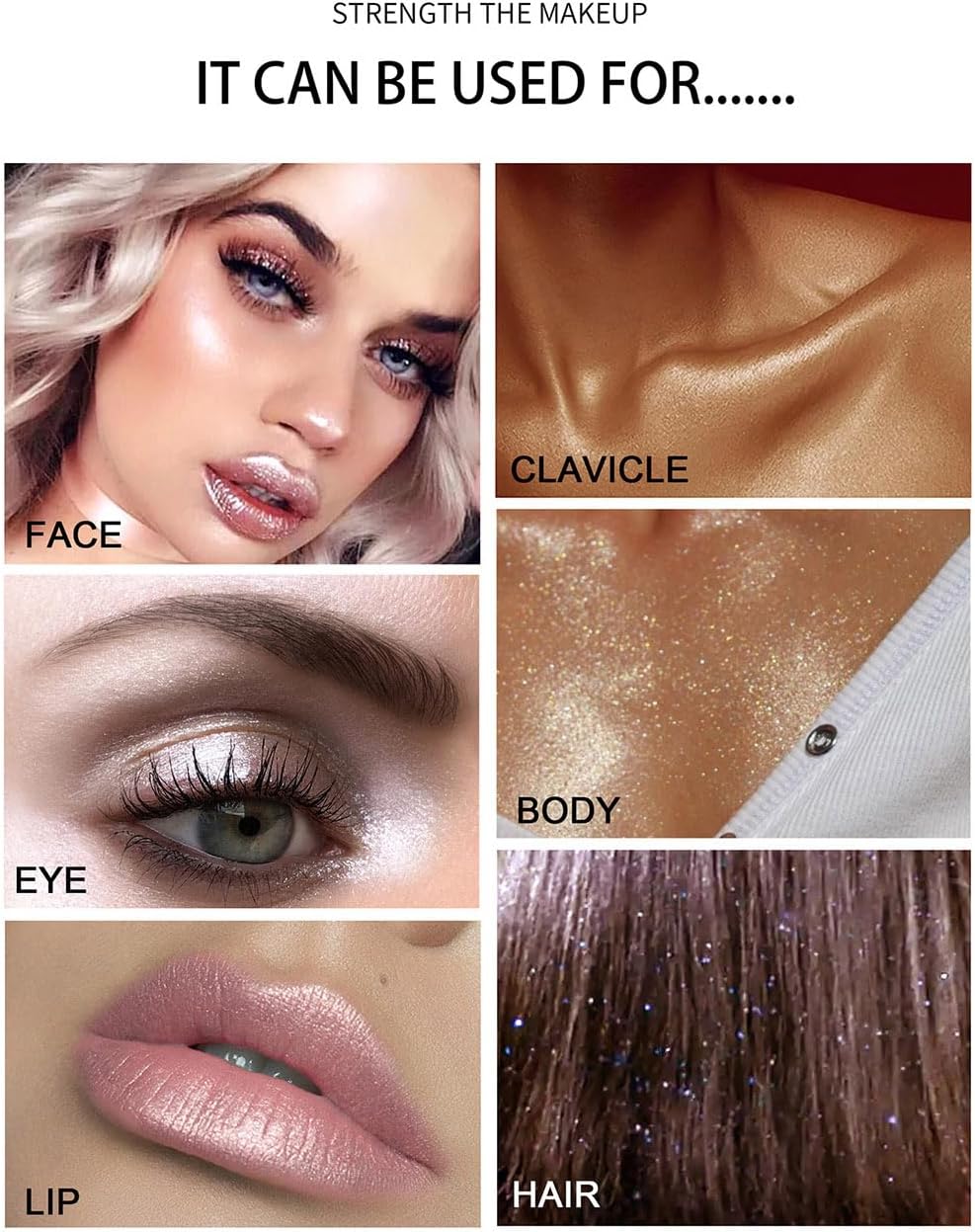 💕Multiple uses: Not only can be used on the face, but also can be used as a body highlighter, such as arms, collarbone, legs, shoulders, hair and any part you want to brighten.