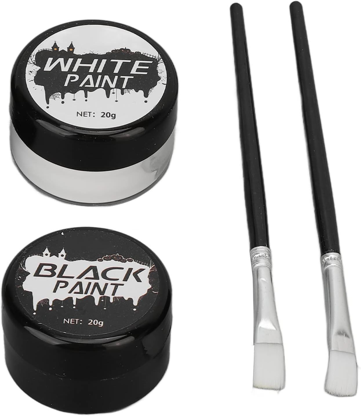 Face Body Paint Set Black and White, Clown Makeup Professional Oil Based Paint with 2 Brushes, Halloween Special Effects Dress Up Face Cosmetic for Adult Theater Cosplay Party