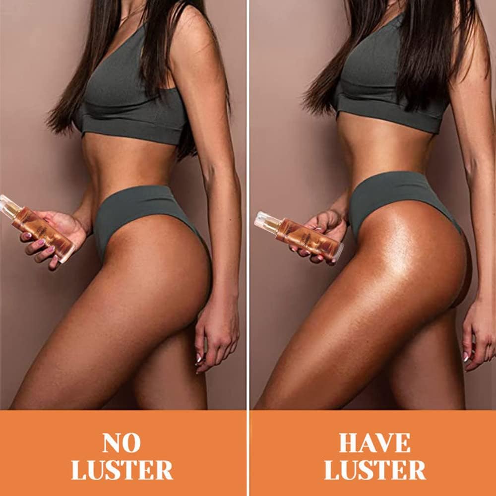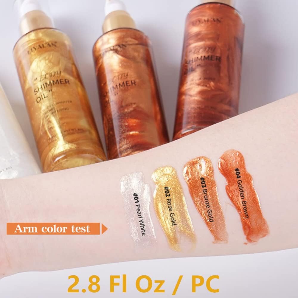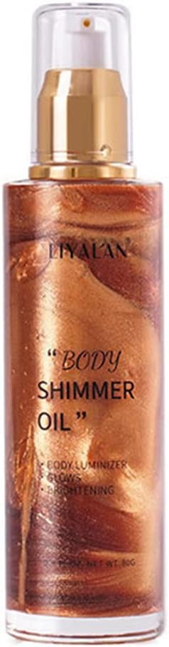 Go Ho Shimmer Body Oil,Moisturizing Light Shimmer Glow Illuminator,Non-sticky Body Luminizer Liquid Highlighter Makeup Your Skin,Smooth Liquid Spray Summer Body Illuminator (2.8 Fl Oz,#3 Bronze Gold)