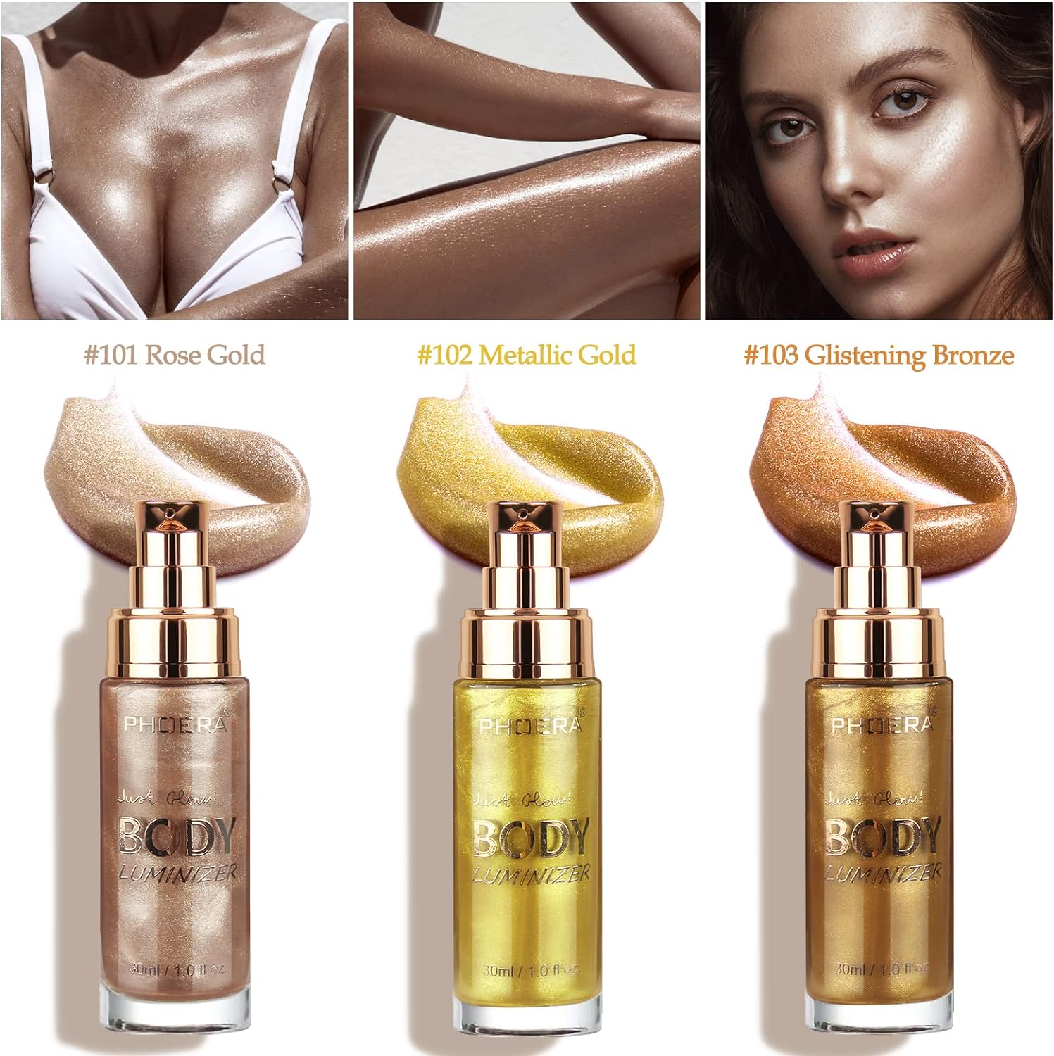 PHOERA High Gloss Waterproof Body Luminizer Glitter Face Shimmer Moist – BUYO