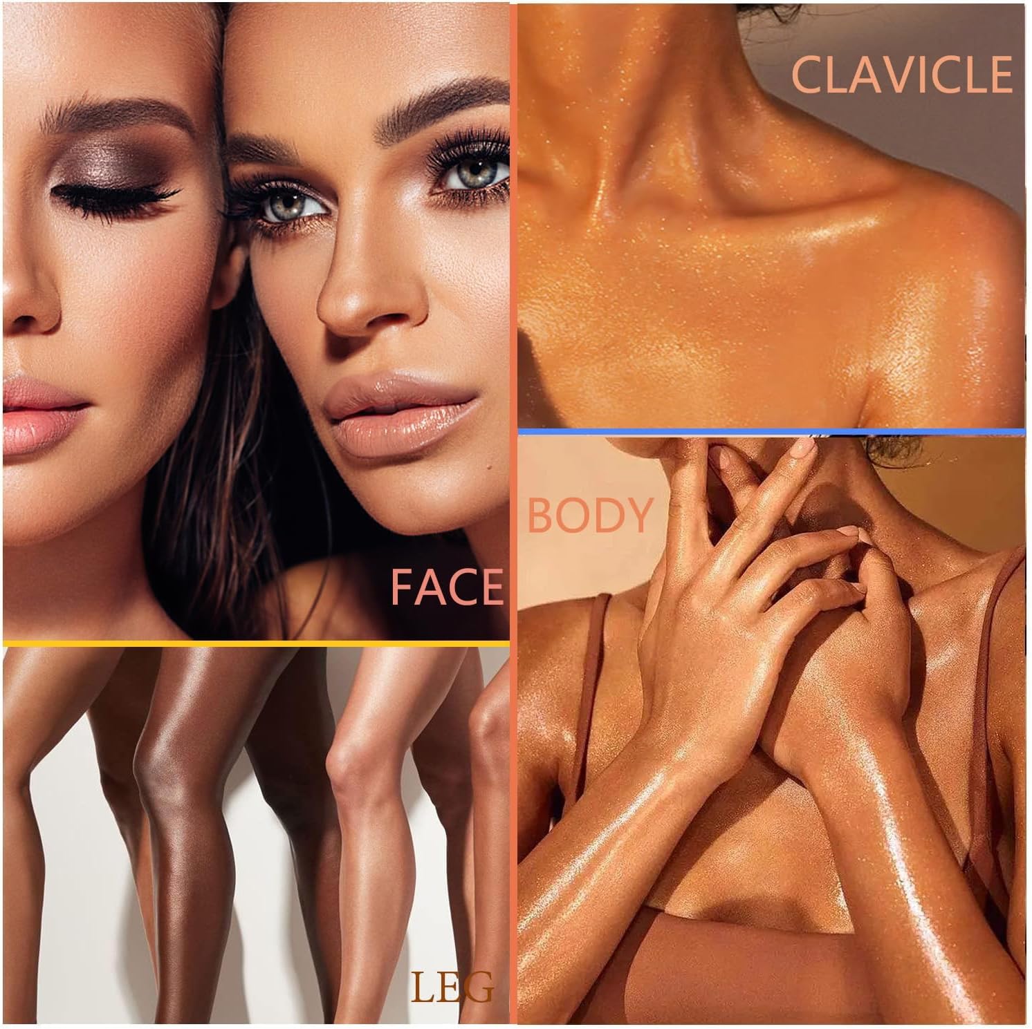 【Glow Your Face & Body】This liquid shimmer body oil with illuminating ingredients is common to the face, clavicle and body that adds light to the face for a glowing, makes the skin look sun-kissed and feeling luxuriously soft, looking complexion.