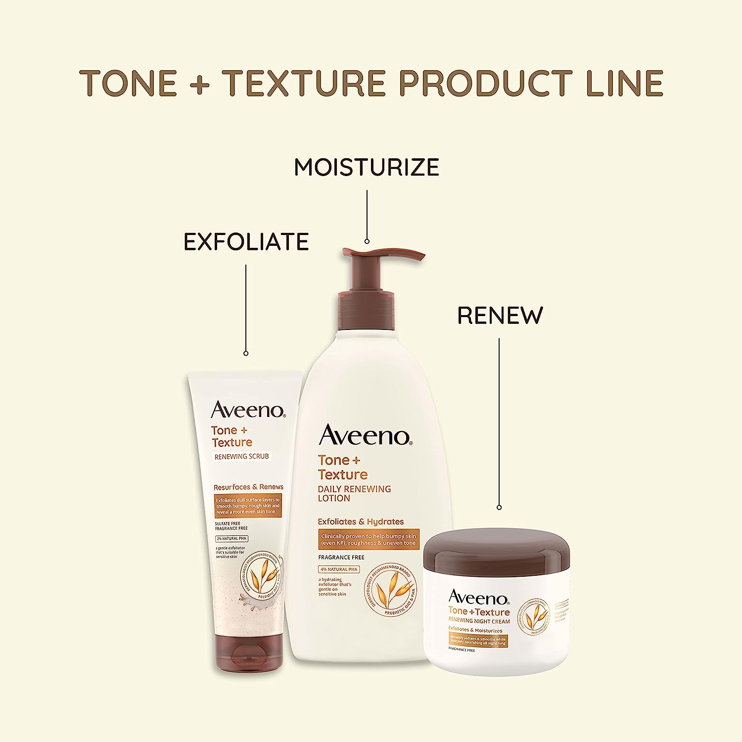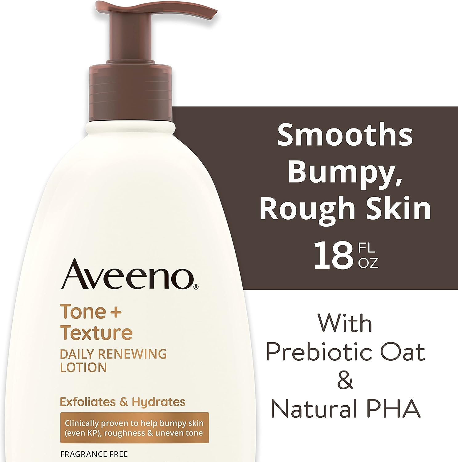 Aveeno Tone + Texture Daily Renewing Body Lotion With Prebiotic Oat, Gently Exfoliates & Hydrates Sensitive Skin, Rough Skin, Fragrance-Free, Fl. Oz, 18 Ounce (Pack of 1)