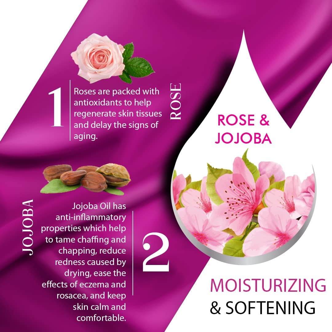 Nourish and Revitalize: Enriched with the goodness of rose and jojoba, this body lotion is packed with vitamins, antioxidants, and fatty acids that nourish and revitalize your skin, promoting a healthy and radiant appearance.