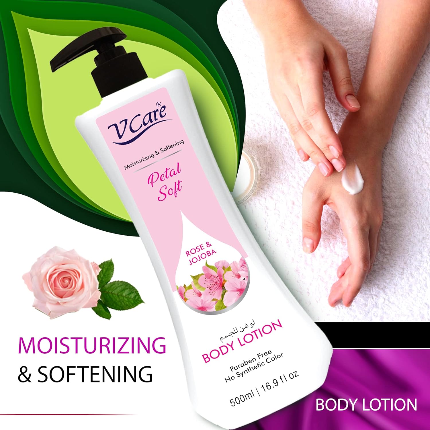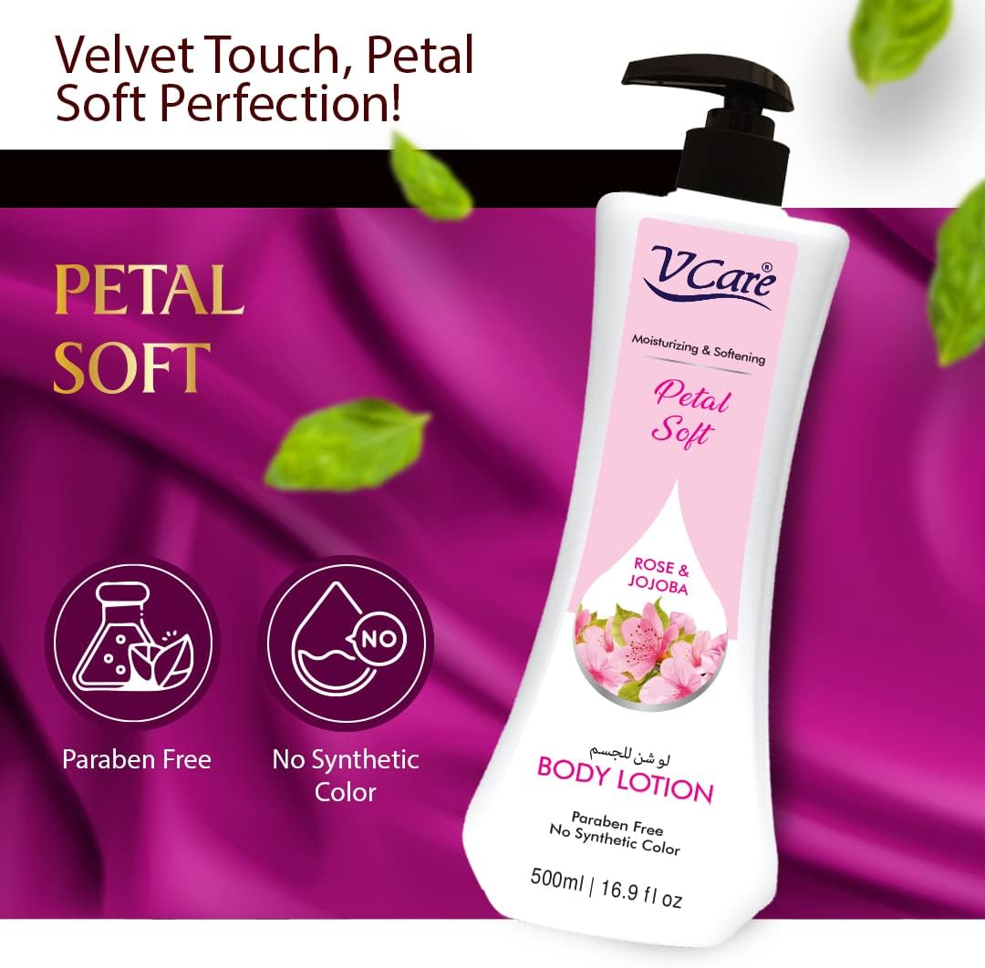 V Care Vcare Petal Soft Body Lotion - 500ml |Rose and Jojoba Extracts| Moisturizing Body Lotion for Dry and Rough Skin