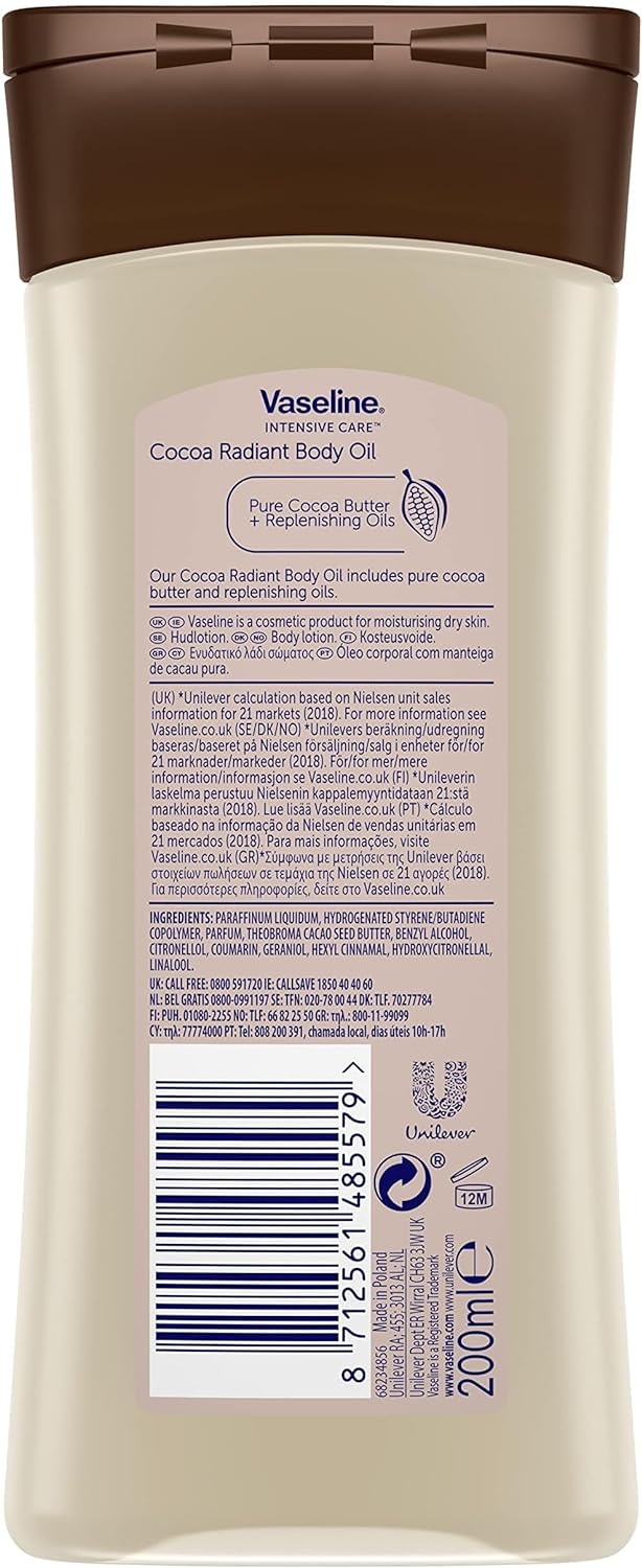 Vaseline Intensive Care Cocoa Radiant Body Gel Oil with pure cocoa butter and replenishing oils for healthy glowing skin