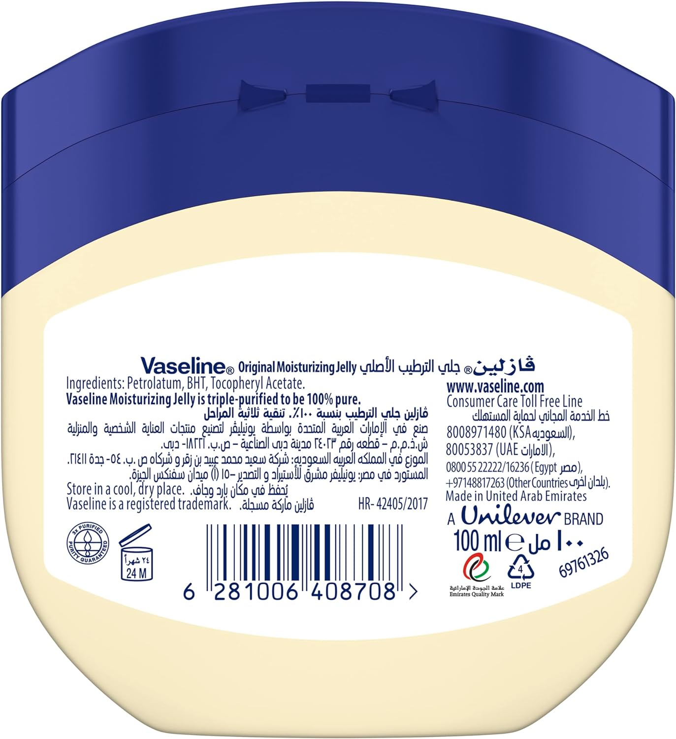 VASELINE Moisturizing Petroleum Jelly for dry skin, Original, to heal skin damage, 100ml