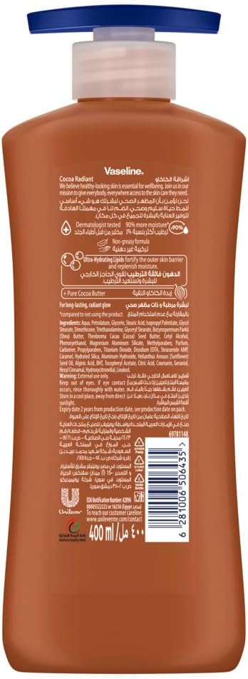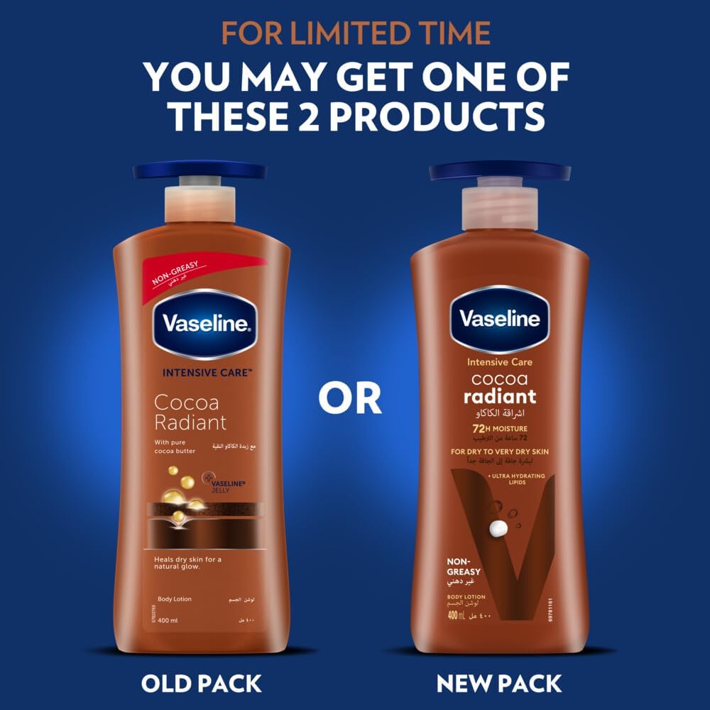 Vaseline Intensive Care Cocoa Radiant Hand and Body Lotion moisturizes dry skin and dry hands
