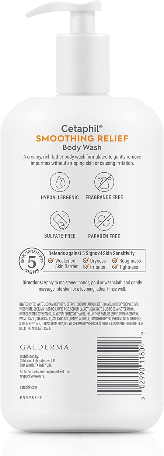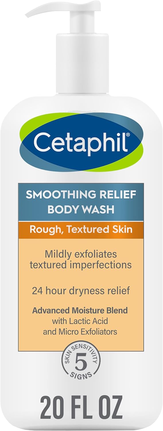 Cetaphil Body Wash by NEW Smoothing Relief Exfoliating Body Wash, Mildy Exfoliates to Smooth Rough, Textured Skin, 24 Hour Dryness Relief, For Sensitive Skin, 20 oz, 20 Fl Oz (Pack of 1)