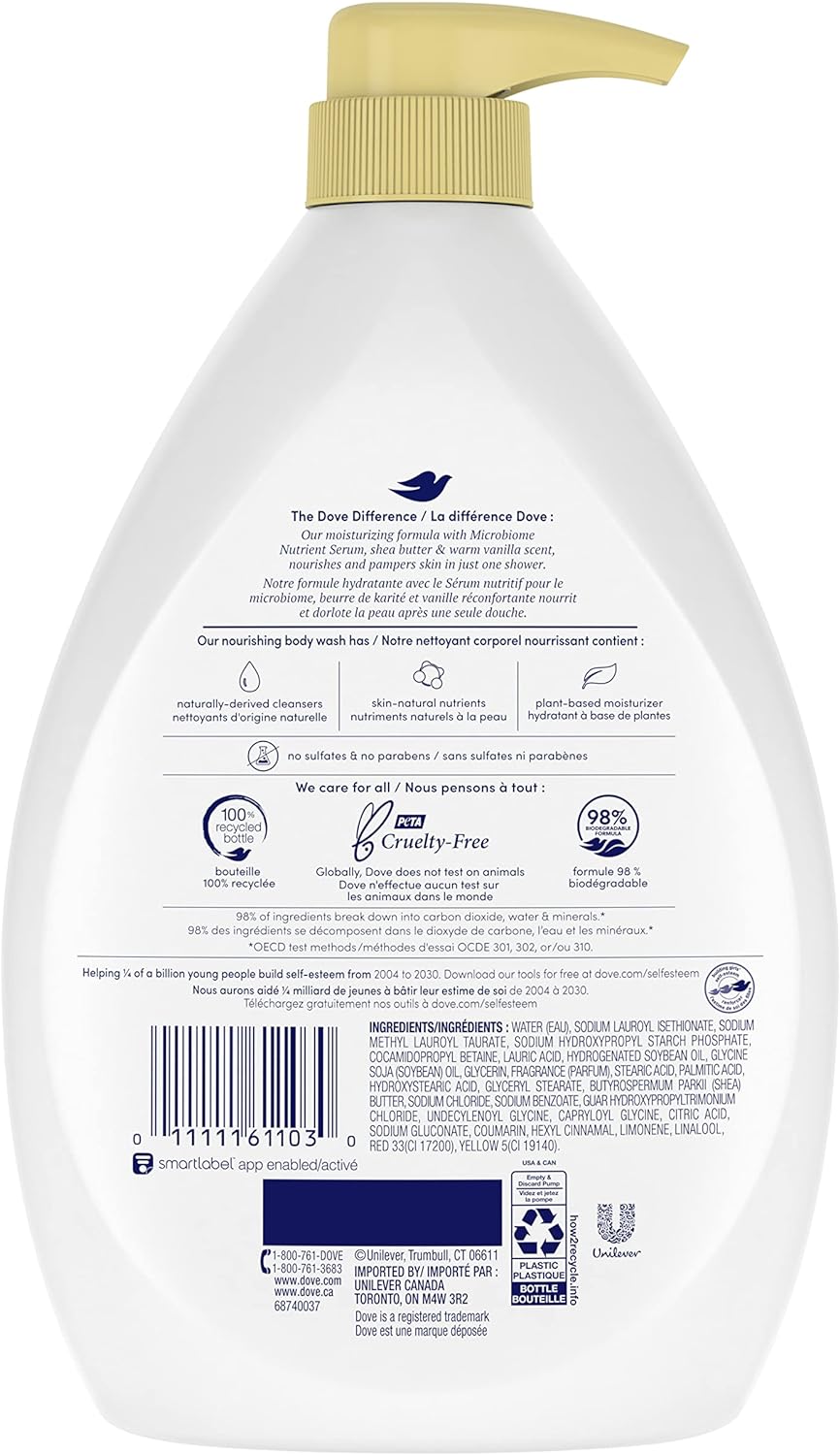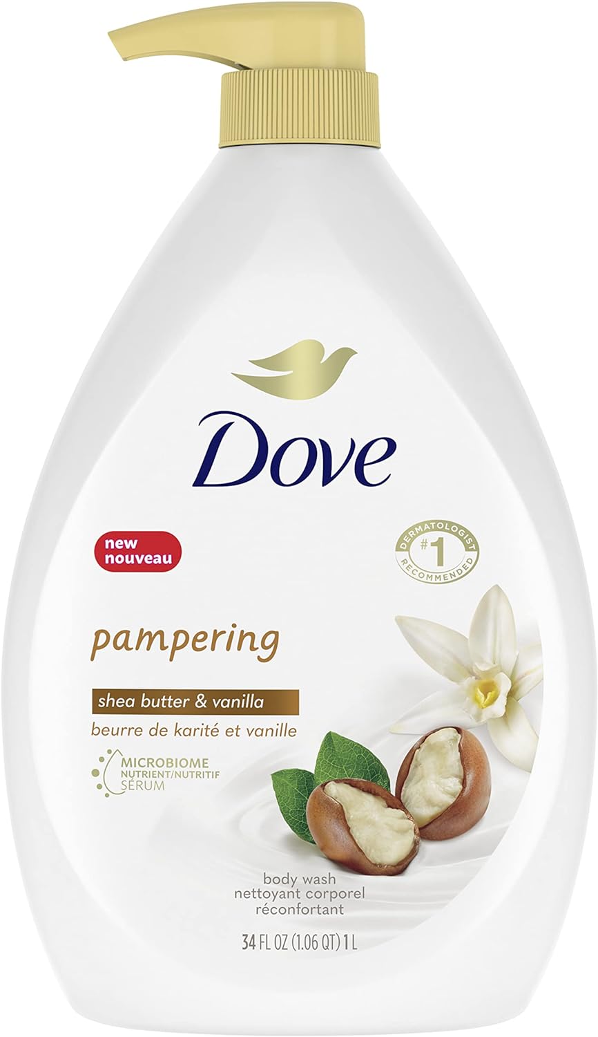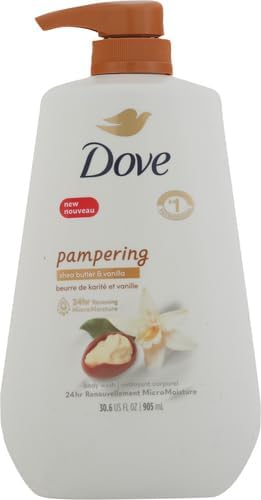 Dove Purely Pampering Body Wash with Pump for Dry Skin Shea Butter with Warm Vanilla Cleanser That Effectively Washes Away Bacteria While Nourishing Your Skin 34 oz
