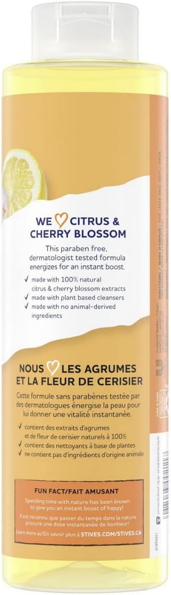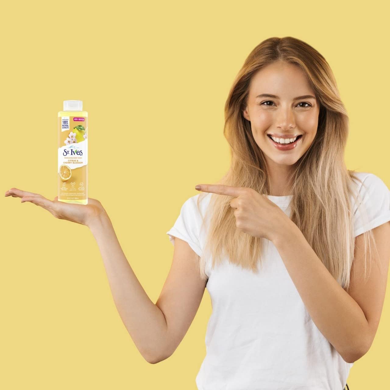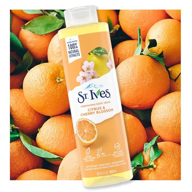 St. Ives Citrus & Cherry Blossom Energizing Body Wash energizes for an instant boost, while gently cleansing skin with a sudsy, sumptuous lather