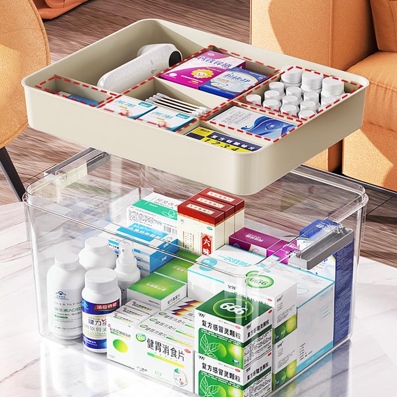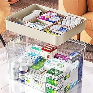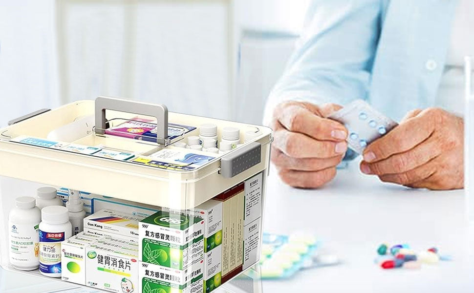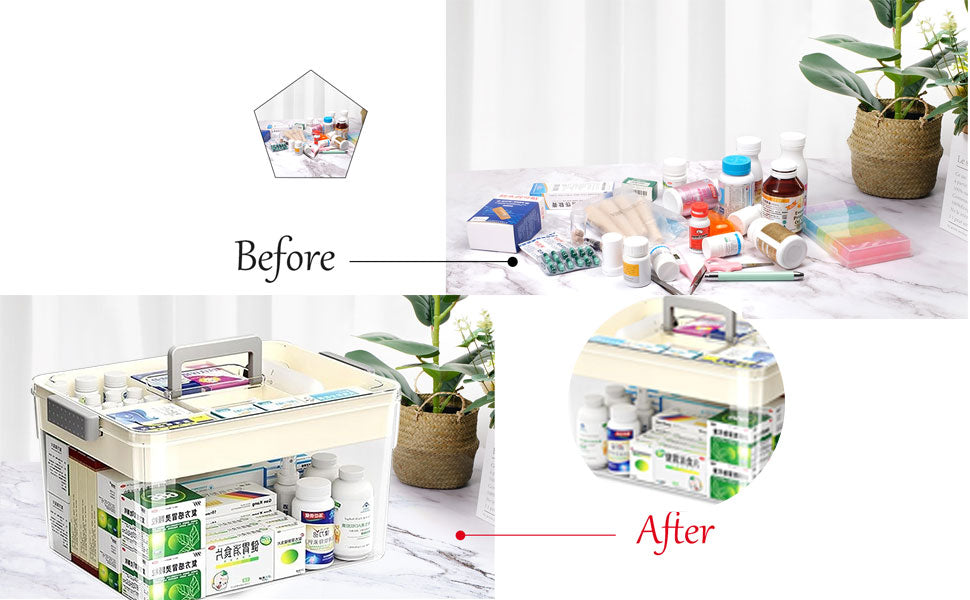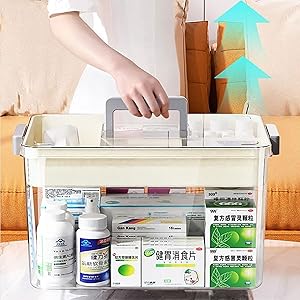 【Transparent Top & Comfortable Handle】 The inside of the medical Box can be seen from the outside, making it easy to distinguish things. When you need the pills and medicines, you can take it out quickly. There is a comfortable handle on the product, thus you can carry your toolbox to anywhere, which is labor-saving and convenient.