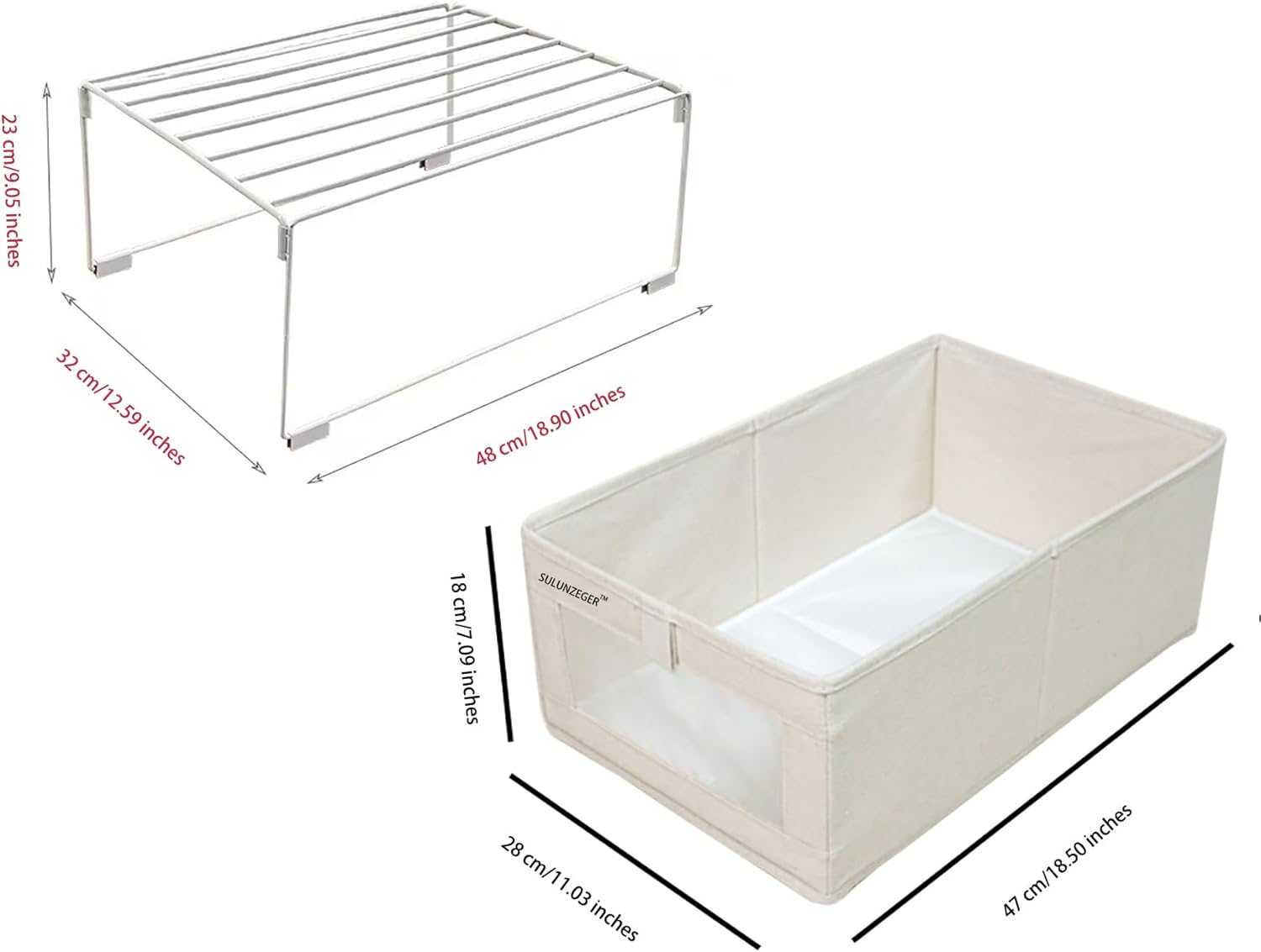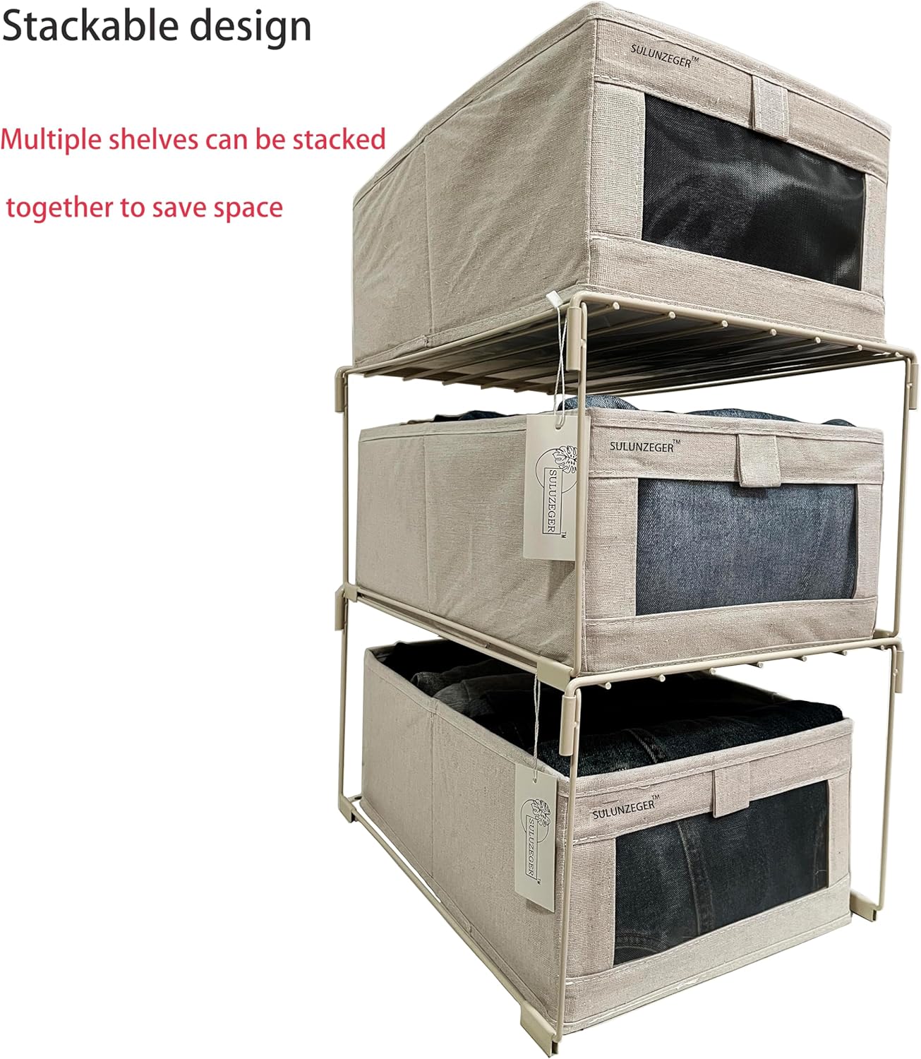 SULUNZEGER Drawer Organiser, 2 Pack Stackable Clothes Storage Box with 1 Pack Foldable Metal Closet Organizer Rack, Wardrobe Bag for Cupboard Cabinet Home Storage, (Beige) (1 set)