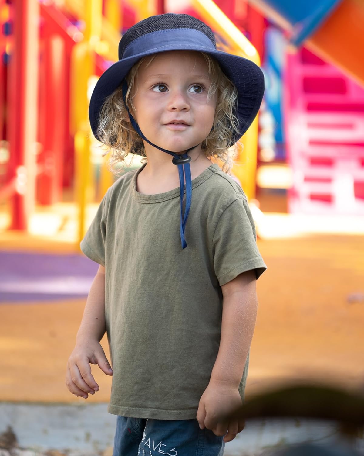 - Kids' UPF 50+ Sun Protection Hat: The wide brim sun hats for kids can block 98% of UVA and UVB. The 3.5 inch wide brim and extra neck flap, which provide a better protection for face, ear and neck