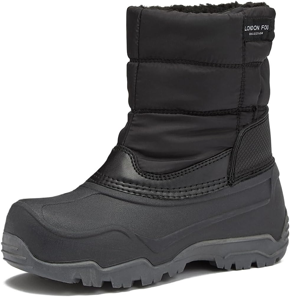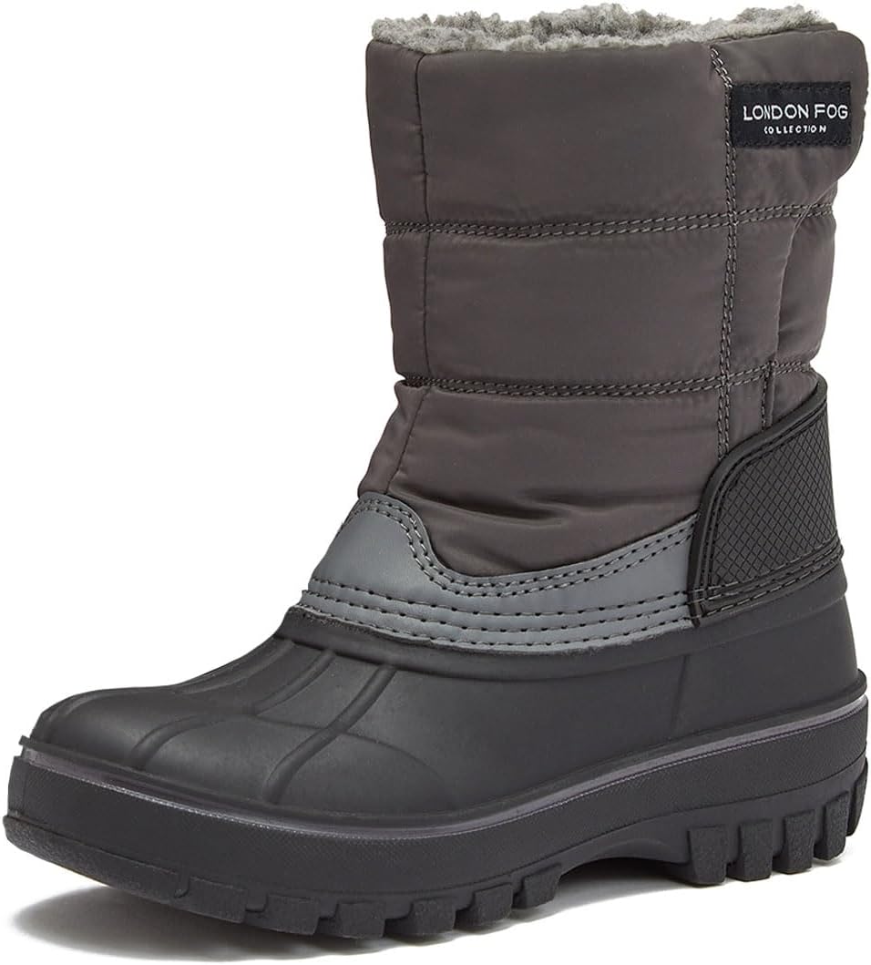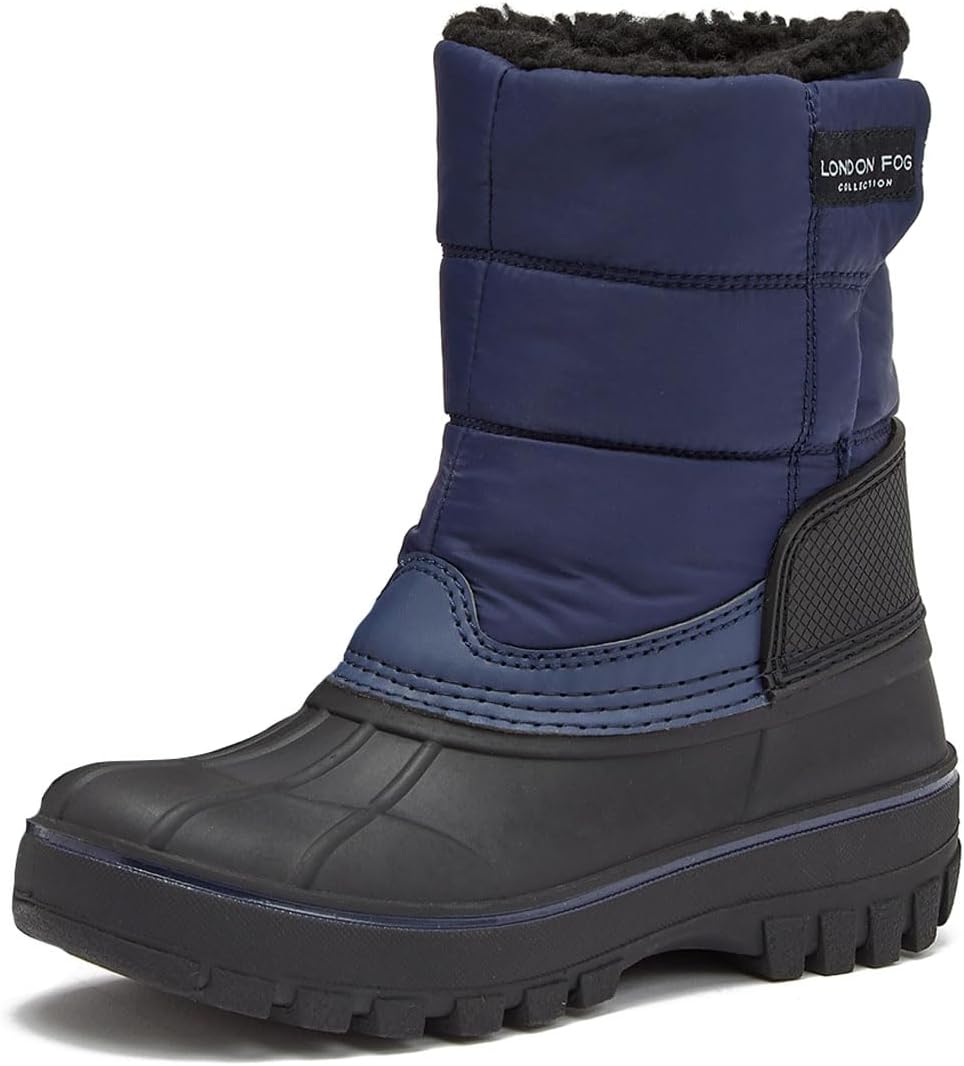 The London Fog Jett toddler and kids winter snow boots are waterproof, fleece lined, and easy to put on and take off - everything you need in a kids winter boot! The rugged sole is designed to add traction on slipper surfaces, and the adjustable hook and loop closure makes them practical for kids dressing themselves. Available in toddler girl and boy sizes 5 to 10 and little and big kid size 11 to 6.