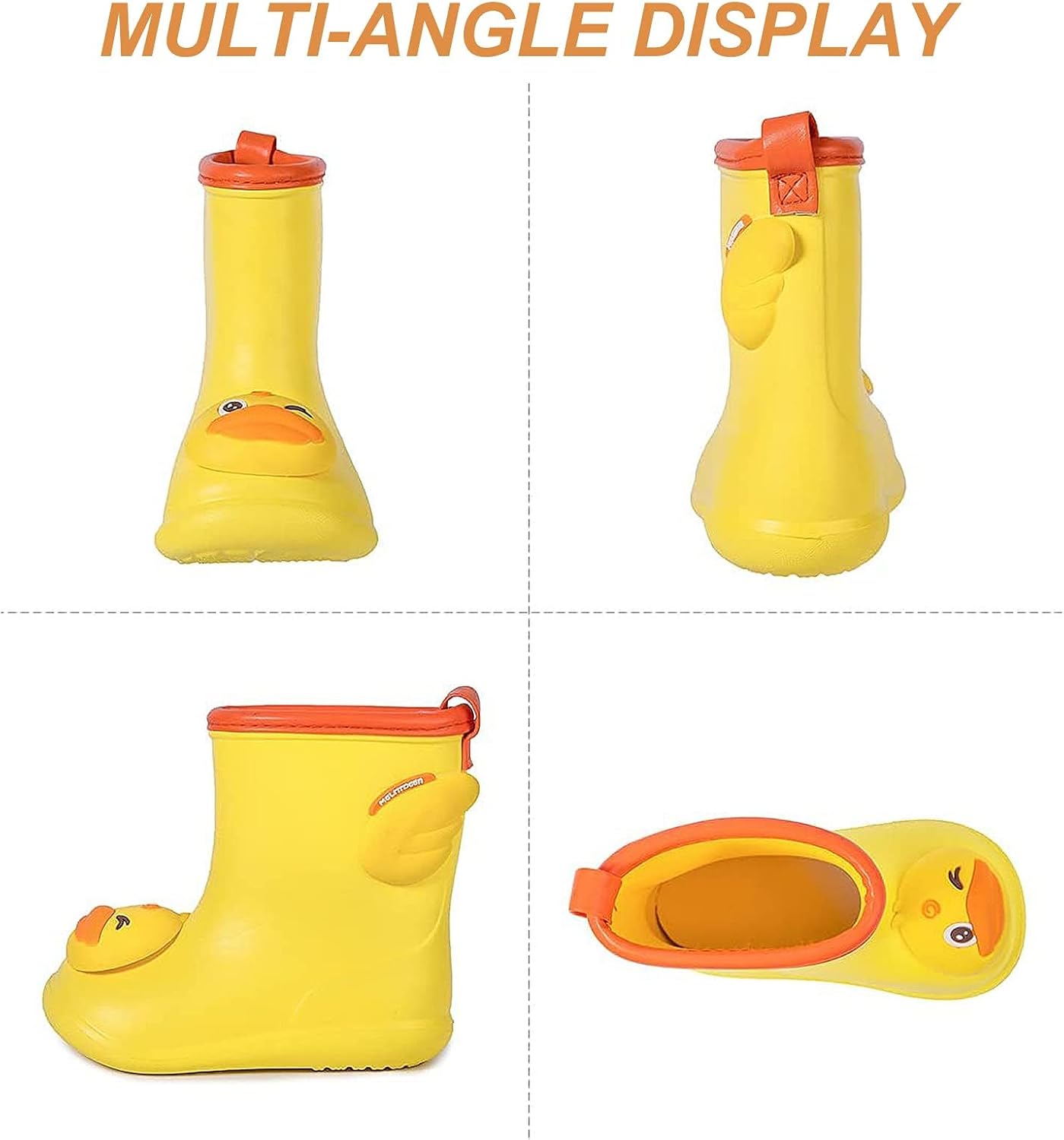 - Exquisite design--Kid rain boots. Unique 18D pattern design, fashionable and creative. Reflective heel strap to help children put on shoes and encourage them to be independent. these girls & boys rain boots are a smart choice for parents who want to invest in a pair of shoes that will last beyond just one season.