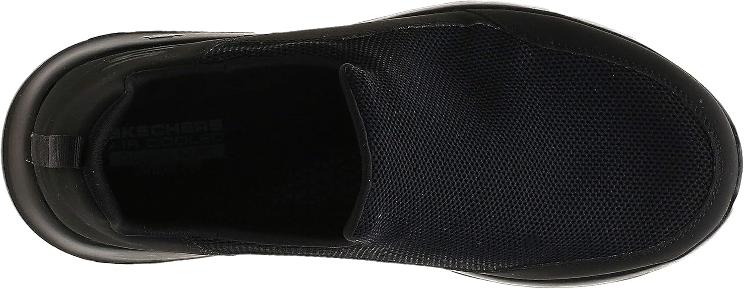 Slip on with quarter overlays. Lightweight, responsive 5Gen cushioning Skechers air cooled Goga Mat insole Durable closed mesh upper with quarter overlays