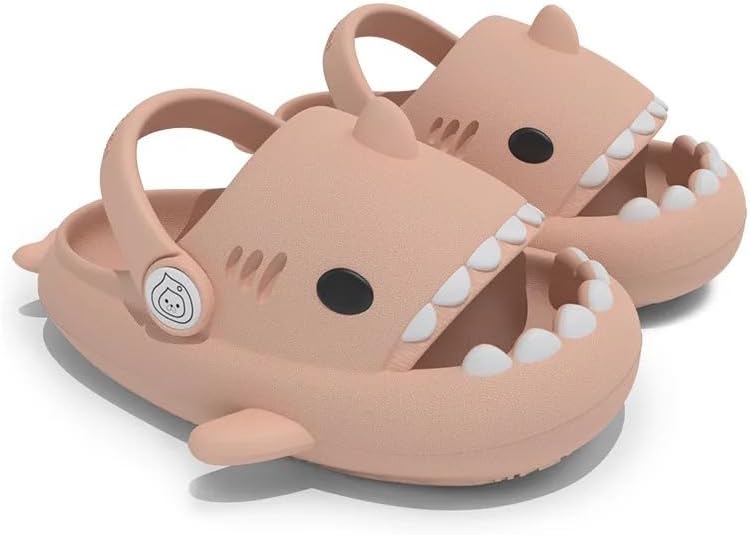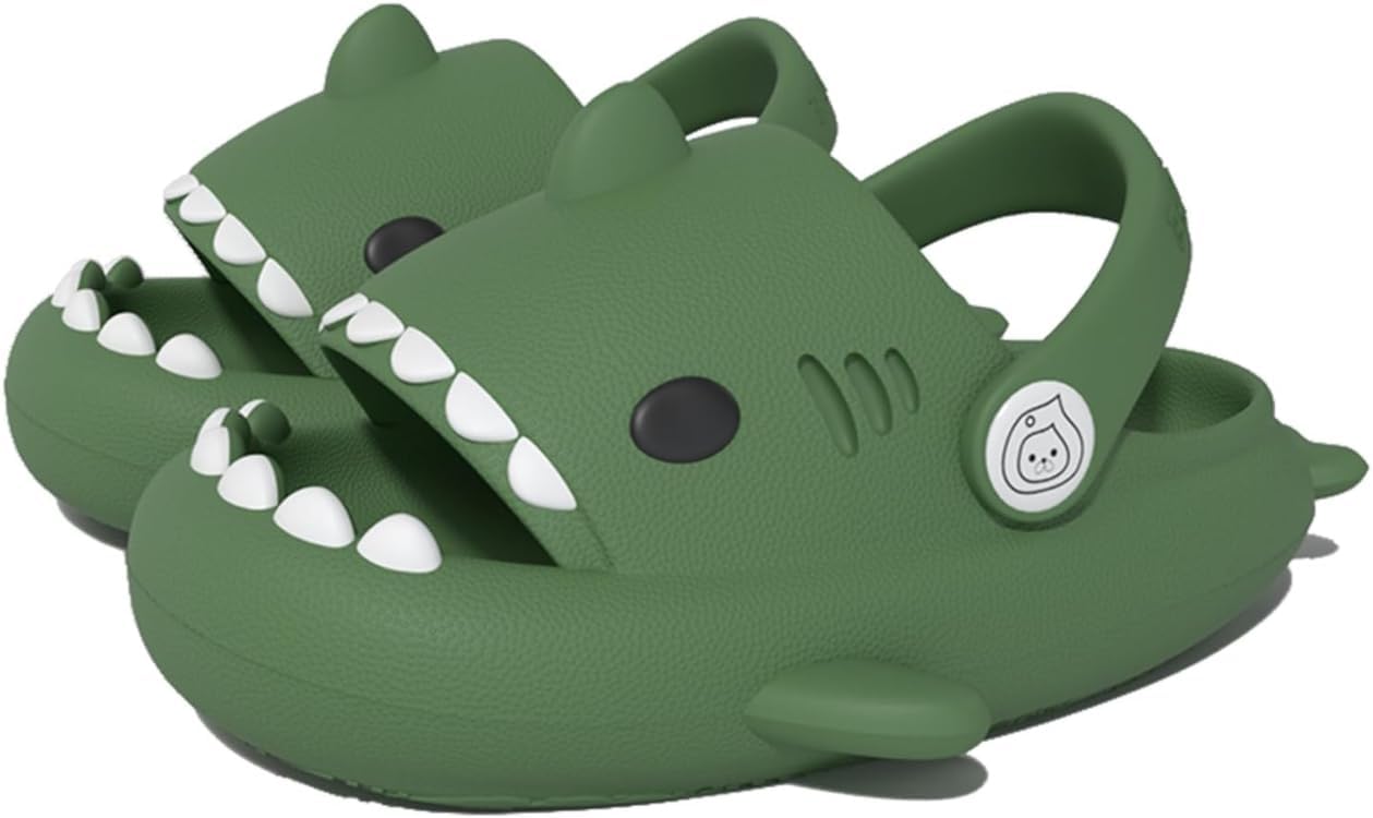 Kids Shark Slides Cloud Slippers with strap Thick Sole and Deep Heel Cup Footbed - Anti-Slip Beach Pool Shower Shoes for Summer