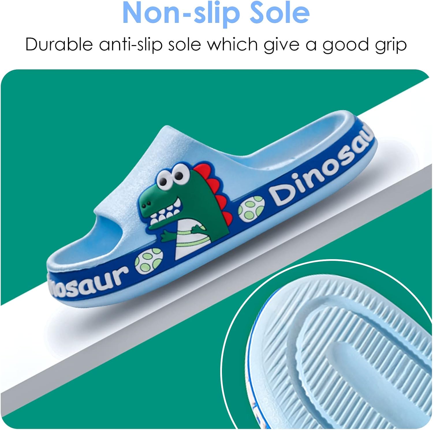 SEAUR Unisex Child Cute Dinosaur Slide Sandals Non-Slip Quick Drying Shower Slippers Boys Girls Open Toe Indoor Outdoor Beach Shoes Bathroom Slippers