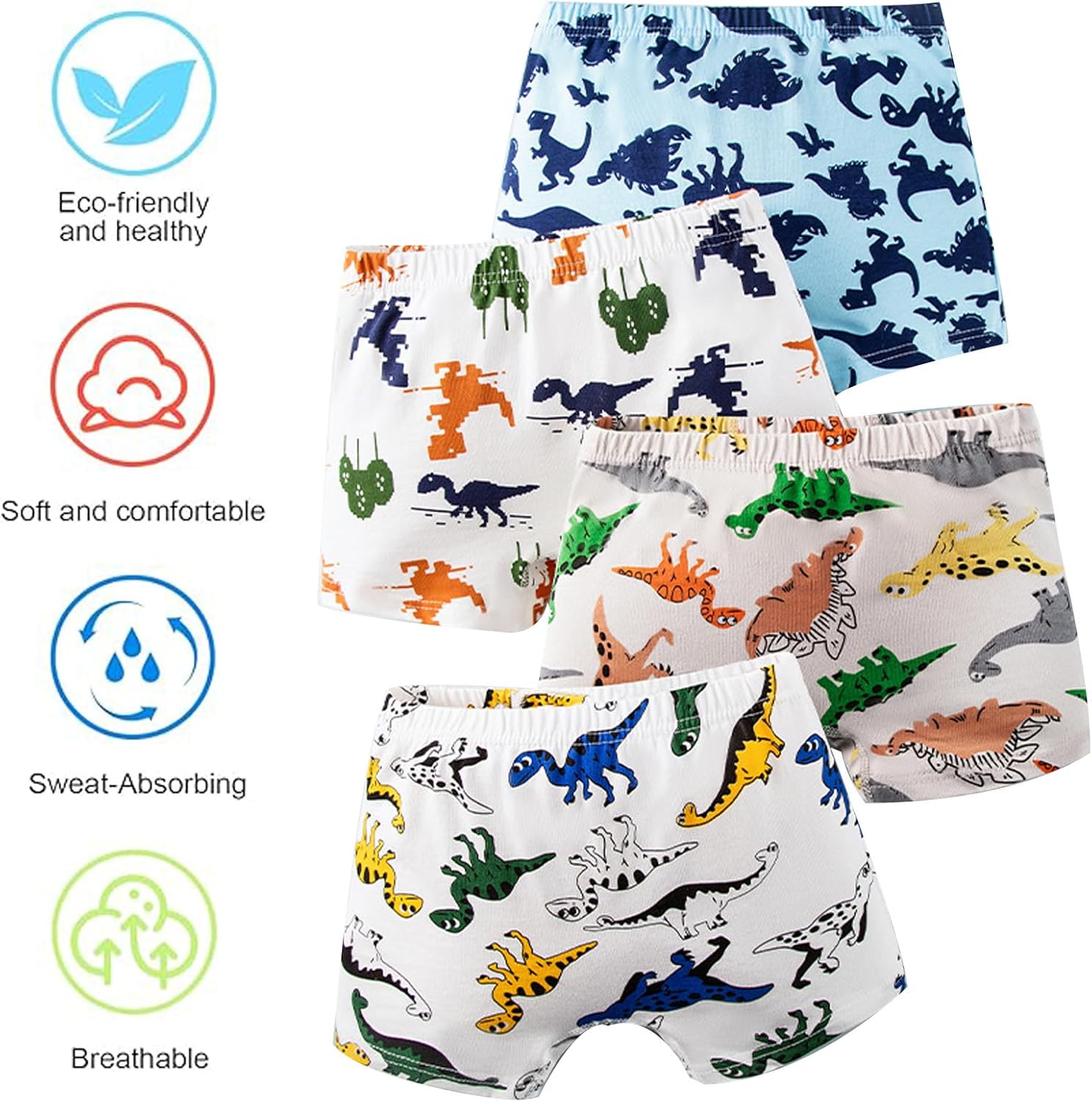 BananaHome 4pack Boys Boxer Briefs Baby Soft Cotton Little Boys Toddler KidsDinosaur Underwear Children Cute katon Panties Breathable Underwear