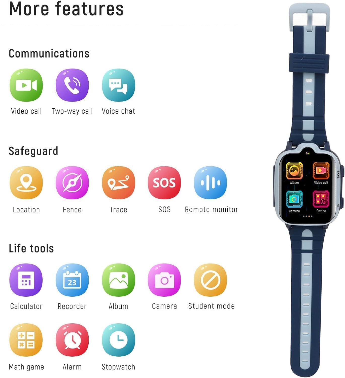 Cutting-edge 4G Technology: GPS, video calls, waterproof design - keep your active kids connected and safe wherever they go!