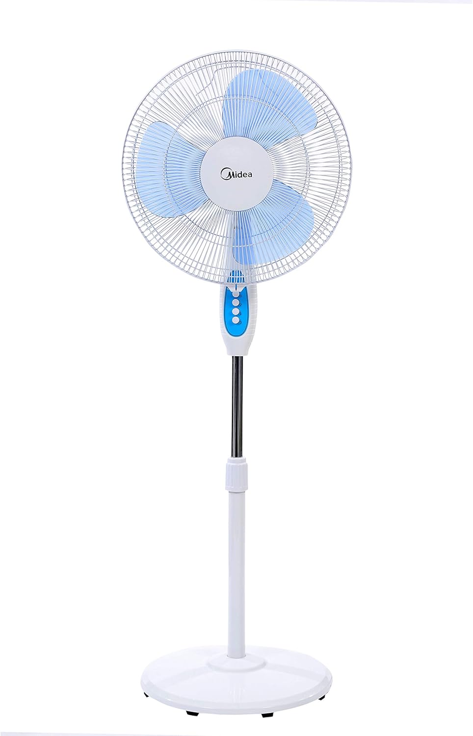 Midea Pedestal Stand Fan with Remote Control, 16 inch, 3D Oscillation Directions, 3 Speed Levels & Adjustable Height, 5 Leaf Blade with 7.5 Hours Timer, Best for Home & Office, Black, FS4015FR