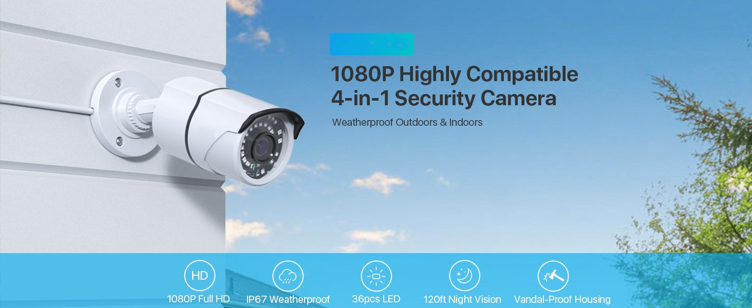 2.0MP HD 1080p 1920TVL Security Camera Outdoor Indoor, (Hybrid 4-in-1 HD-CVI/TVI/AHD/960H Analog CVBS), 120ft IR Night Vision, 105° View Angle Surveillance CCTV Bullet Camera (36PCS LEDs)